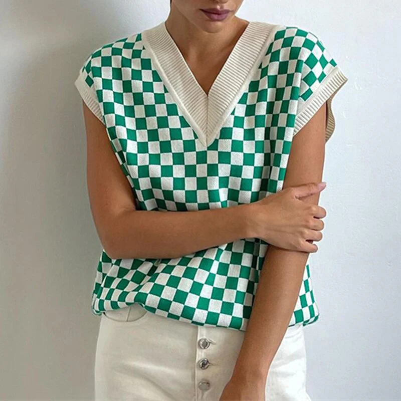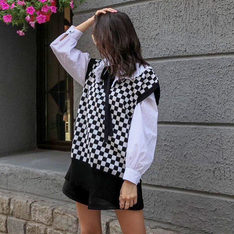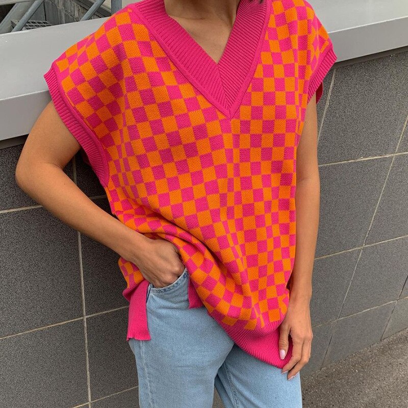 deanwangkt Ladies Autumn Winter Plaid Sweater Women Vest Pullover Casual Loose Streetwear Women Sweaters Knitted Female Waistcoat Chic Tops