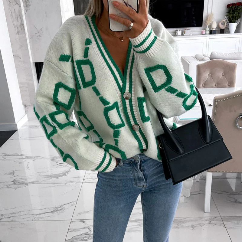deanwangkt Back To School Women Cardigan Green Striped Pink Knit Button Lady Cardigans Sweaters V-Neck Loose Casual Winter Fashion Knitted Coat