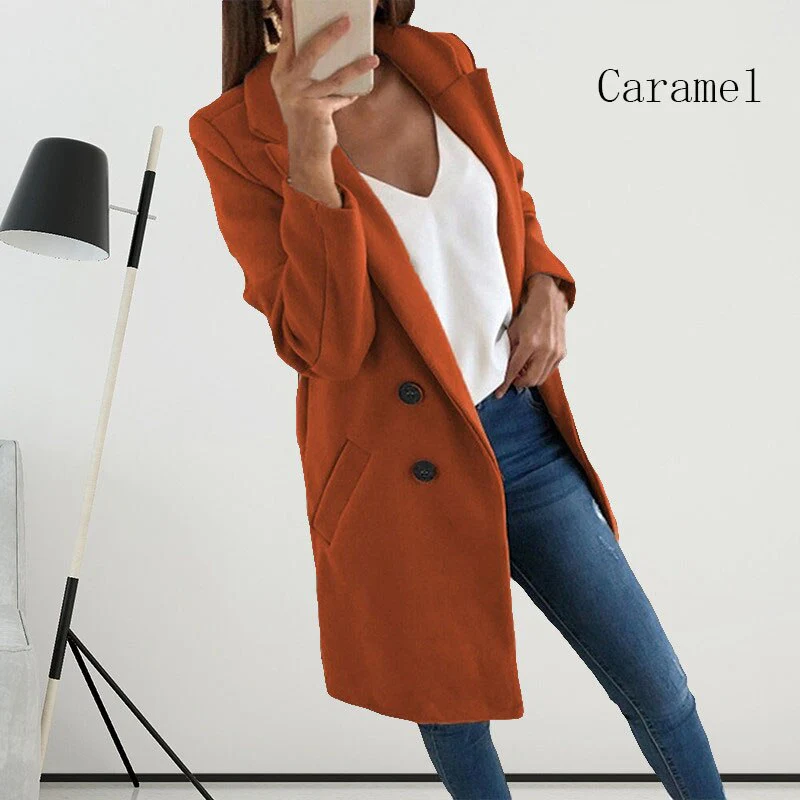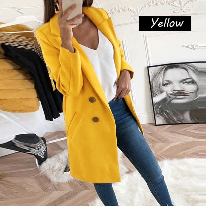 deanwangkt Women Turn-Down Collar Coats Autumn Winter Fashion Long Sleeve Pocket Vintage Jackets Slim Button Solid Casual Outwear Overcoats