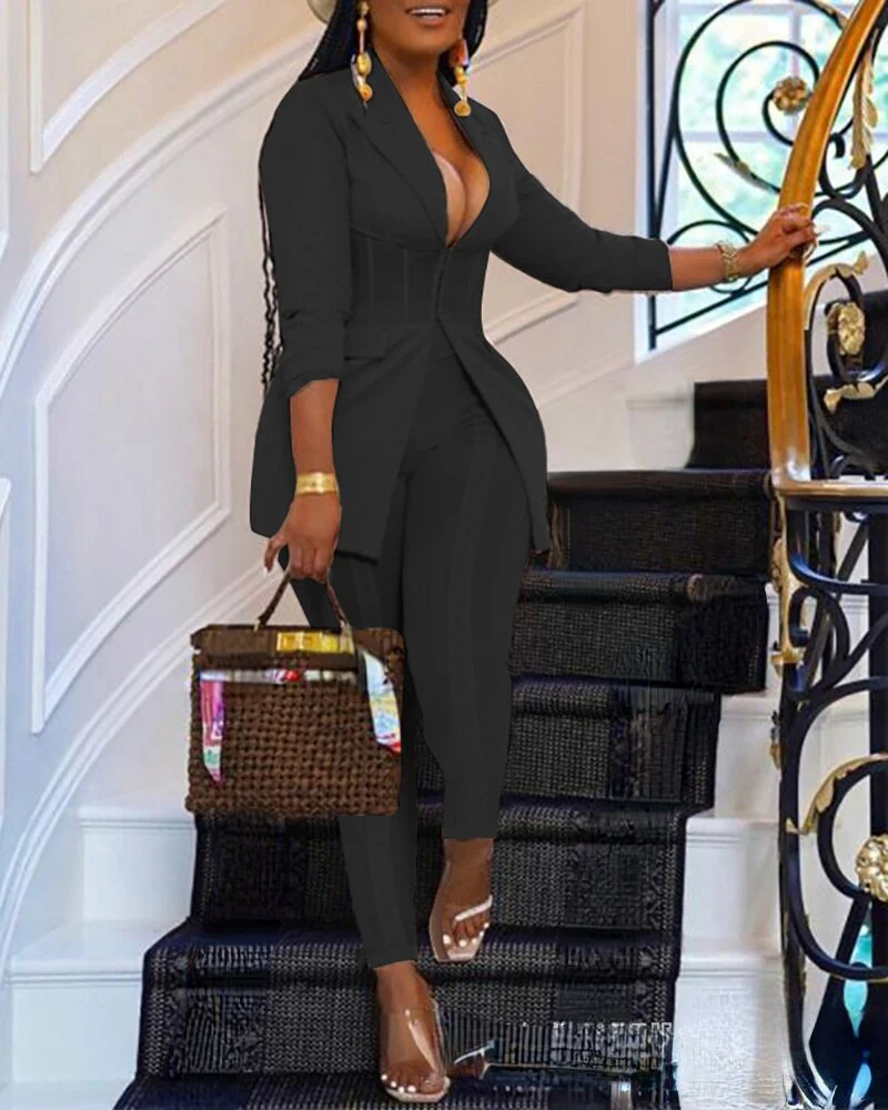 deanwangkt Autumn Women Casual Two Piece Work Wear Fashion Suit Sets Long Sleeve Plaid Print Blazer Coat & Drawstring Pants Set
