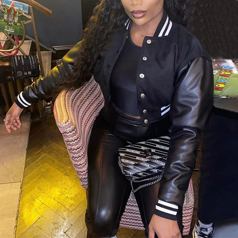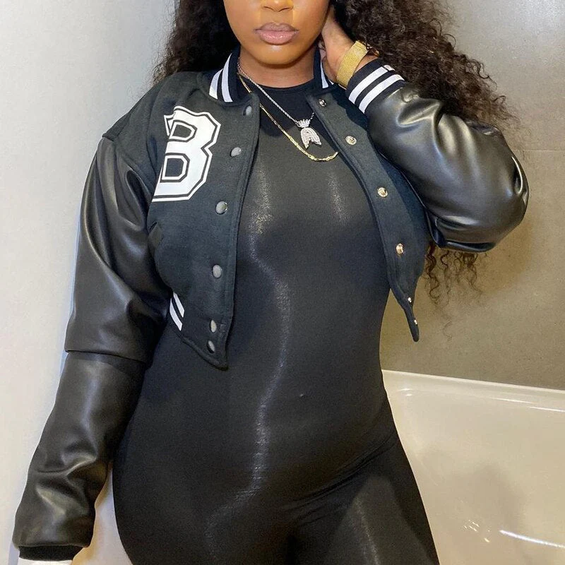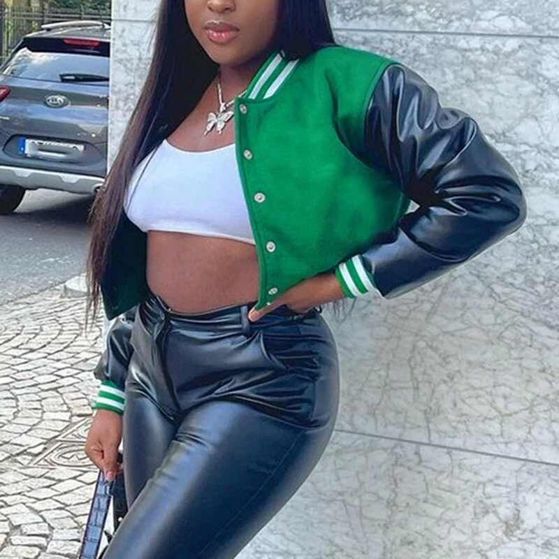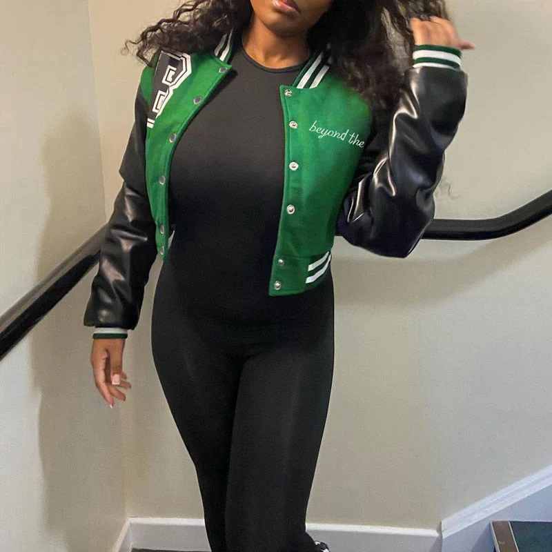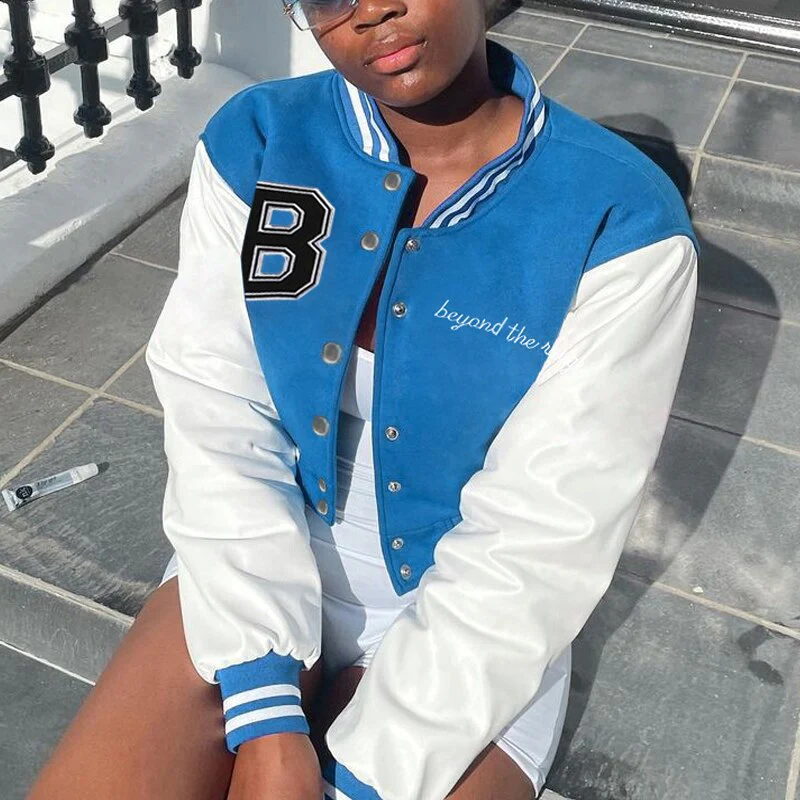 deanwangkt Patchwork Crop Jacket Varsity Women Autumn Winter Casual Oversized Y2k Fashion Baseball Coat