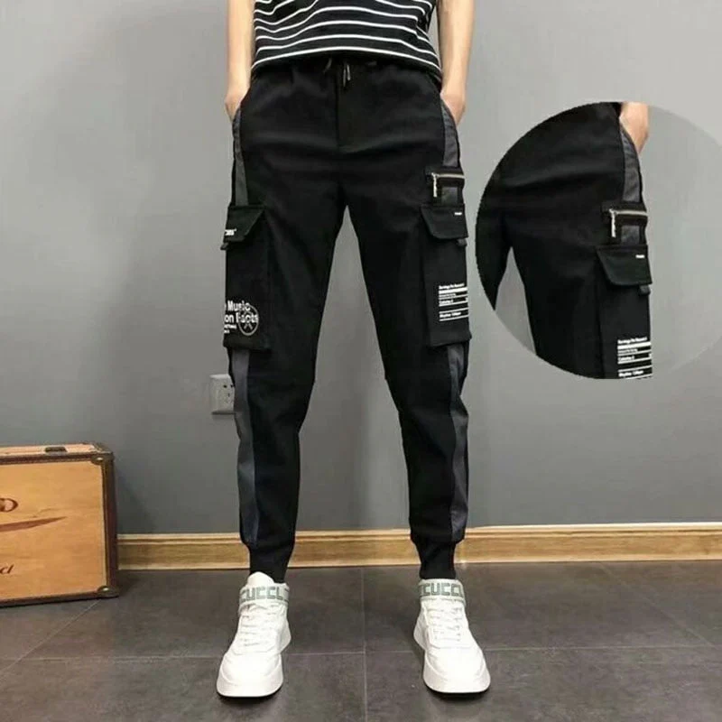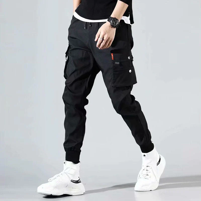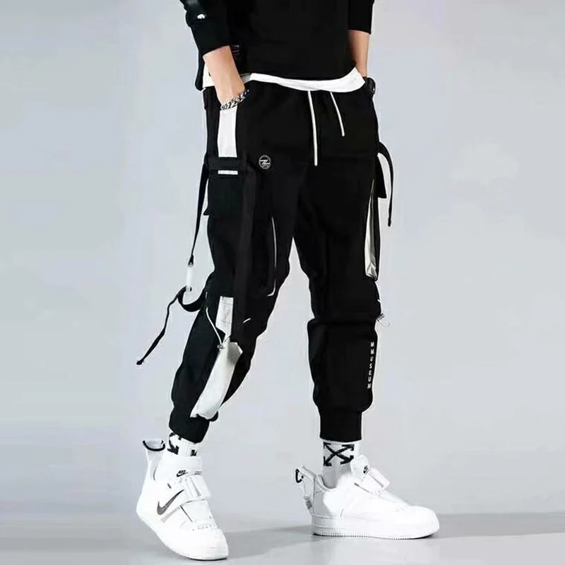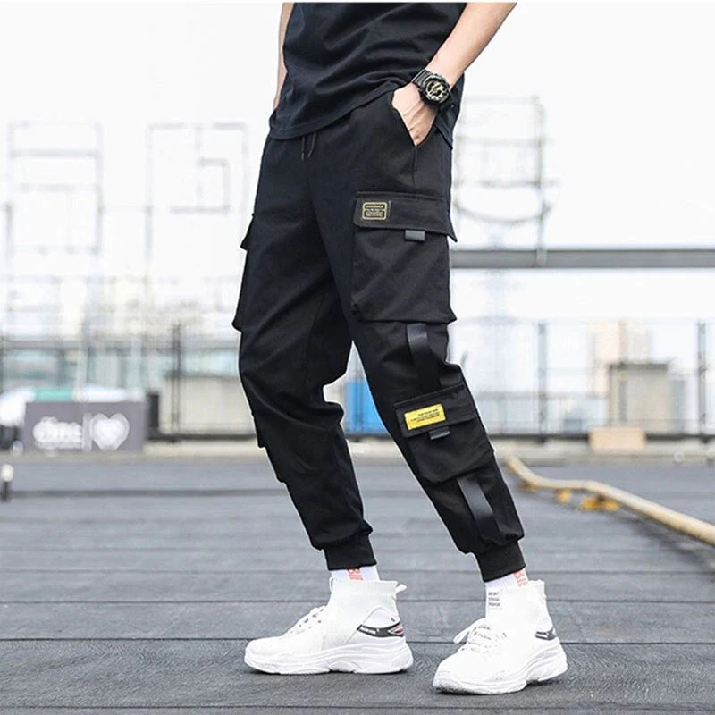 DEANWANGKT Mens Vintage Hip Hop Style Baggy Jeans Men's Side Pockets Cargo Harem Pants Ribbons Black Hip Hop Casual Male Joggers Trousers Fashion Casual Streetwear Pants 5XL