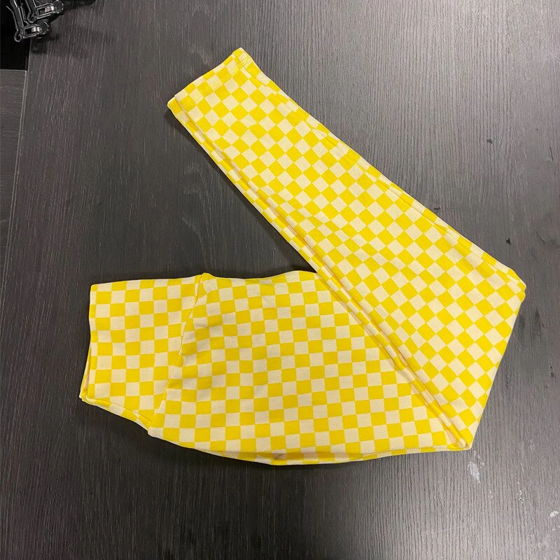 DEANWANGKT Yoga Pants Leggings Peach Hip Tight Lift Elastic Checkerboard Yoga Clothes Female High Waist GYM Running Sports Fitness