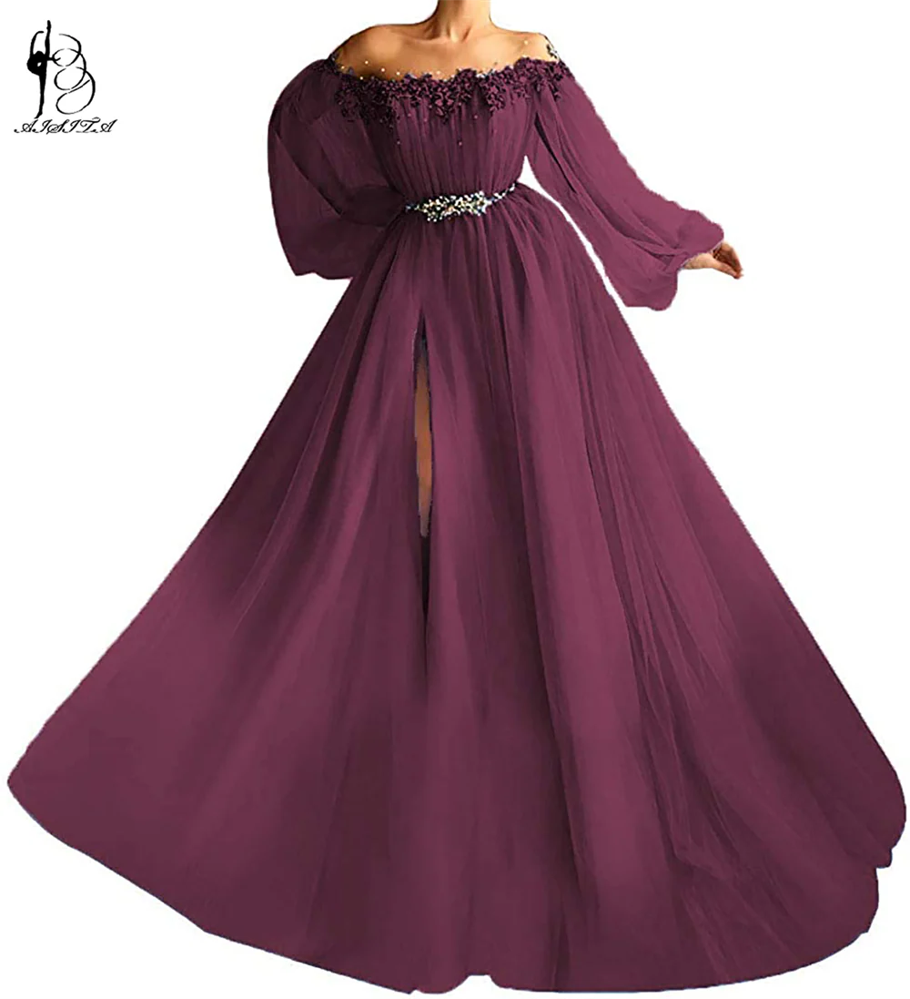 Graduation dress Sexy Prom Evening Dresses Long Off the Shoulder Party Dress Appliques High Split Cocktail Gown Saudi Arabia Dubai