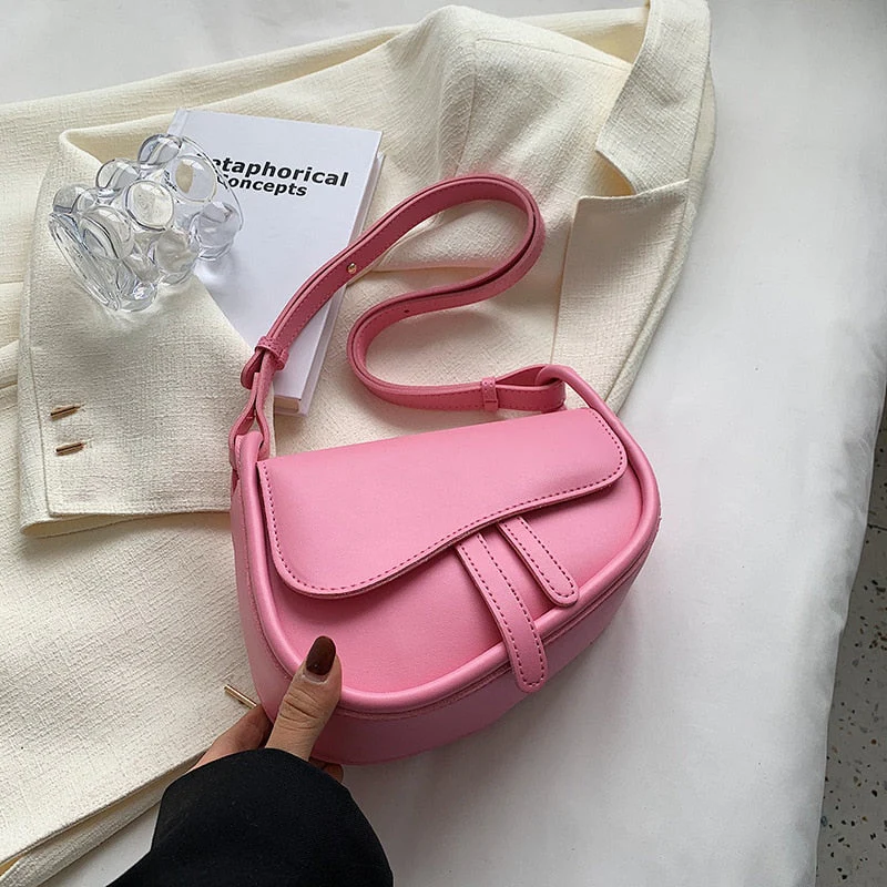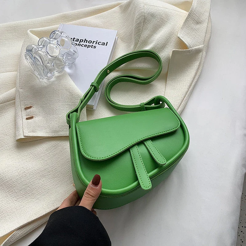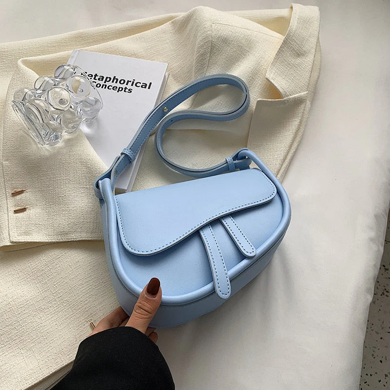 deanwangkt Fashion Leather Saddle Bag Woman Flap Handbag New Shoulder Bags Solid Color High Quality Luxury Small Purses All-Match