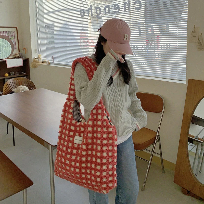 deanwangkt New Winter Warm Plush Bag Women Imitation Lamb Hair Cartoon Dog Ears Shoulder Bag For Women Large-capacity Tote Bag Handbag