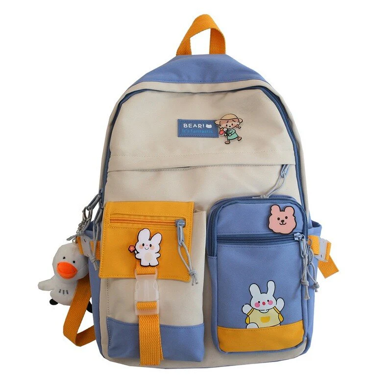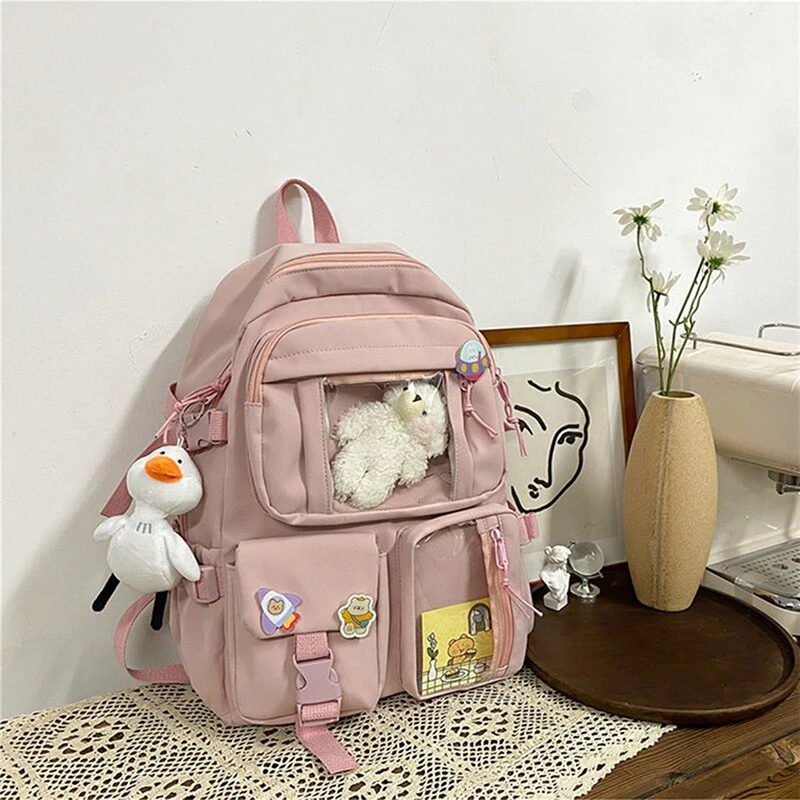 deanwangkt 4-piece Set Of Harajuku Style Fashion Women's Backpack Canvas Waterproof School Backpacks Large-capacity All-match Travel Bag