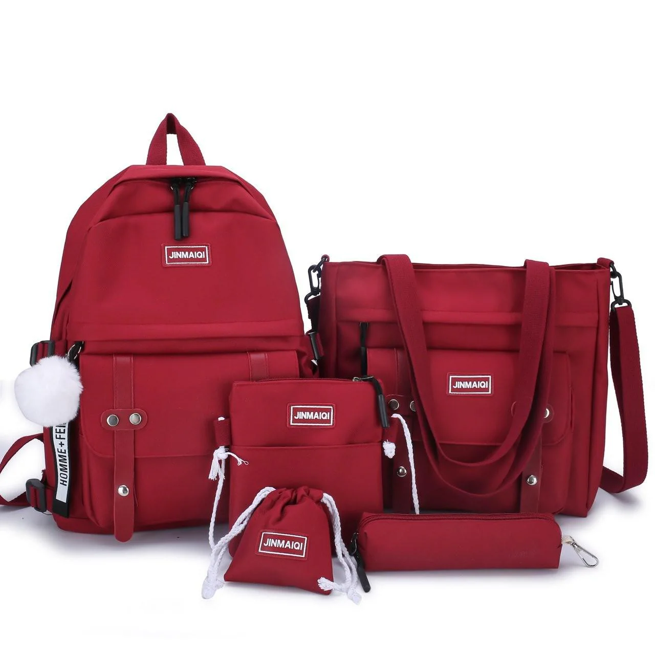 deanwangkt 5 pcs sets canvas School Bags For Teenage Girls Women New Trend Female Backpack Nylon Women Backpack Child Student Shoulder Bag
