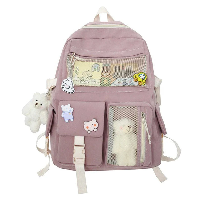 deanwangkt Buckle Badge Women's Backpack Candy Color Fashion Cute Schoolbag Shoulder Student Bag Teenage Girl College School Backpacks