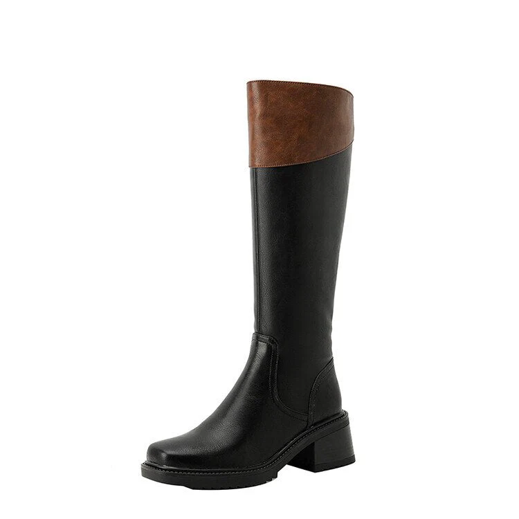deanwangkt fashion inspo Winter Knee High Boots for Women Split Leather Boots Round Toe Chunky Boots Mixed Colors Women Shoes Warm Platform Knight Boots