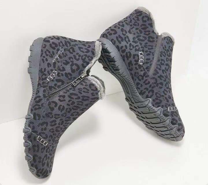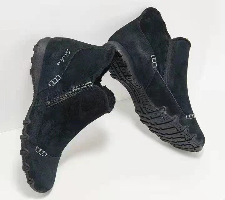 DEANWANGKT Christmas Gift Casual Snow Boots Women New Thick Velvet Zipper Boots Winter Fashion Boots Warmth Flat Heel Ankle Boots Botas De Mujer