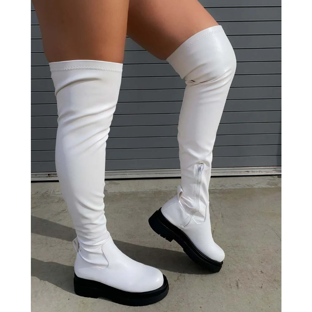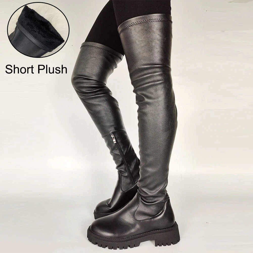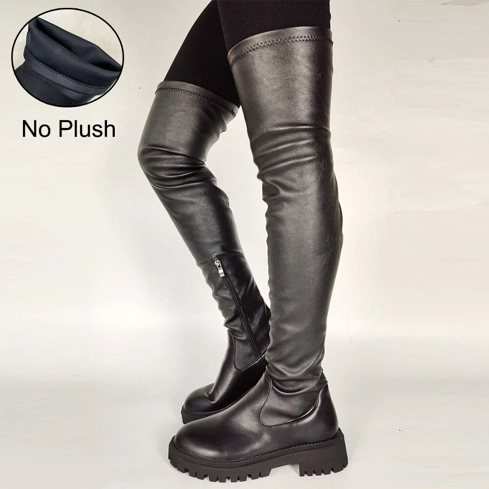 DEANWANGKT Platform Chunky Heel Zipper Ladies Thigh High Boots Fashion Comfy Black Design Casual Over The Knee Boots For Women