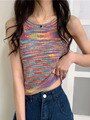 deanwangkt Colorful Striped Summer Tanks Tops Women Korean Rainbow Sleeveless Shirts Top O-Neck Slim Knitted Top Slim Sexy Streetwear