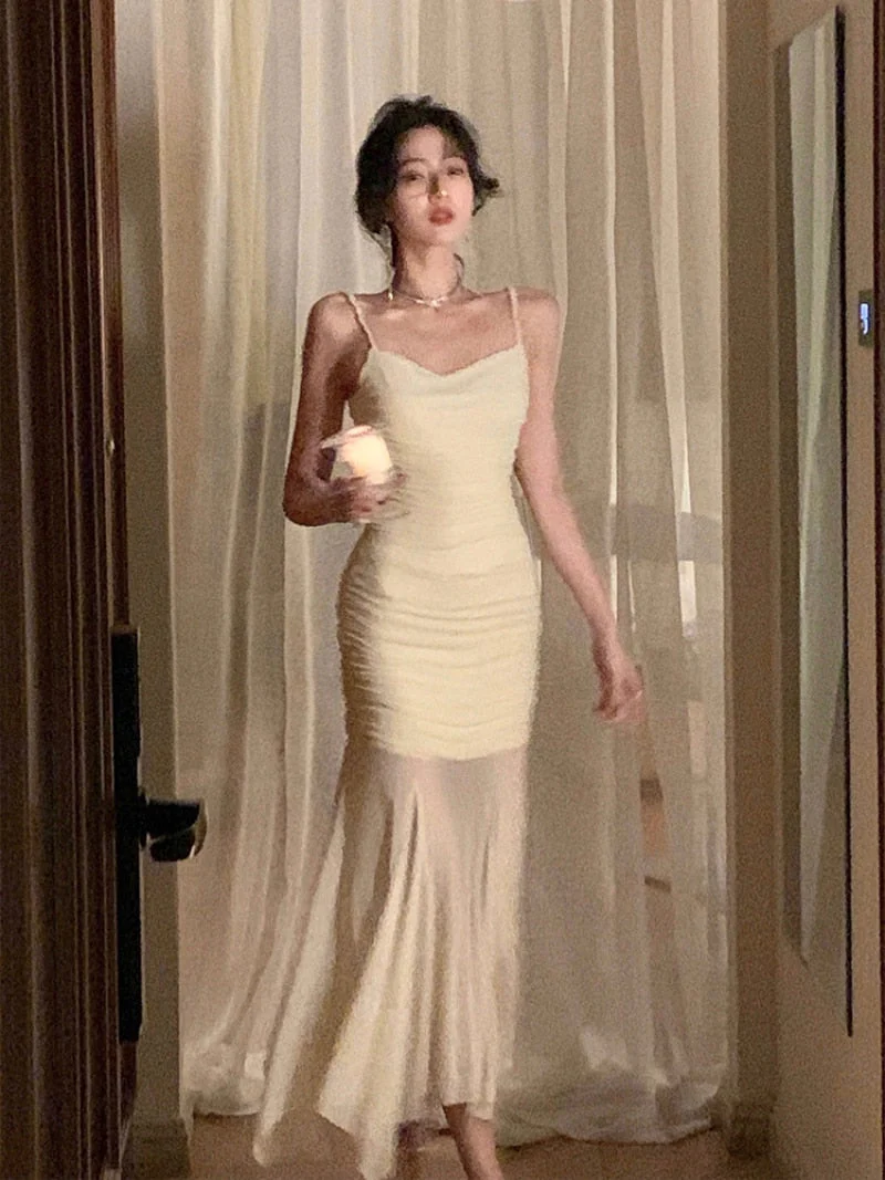 deanwangkt Korean Elegant Straps Dress Women Summer New Fashion Evening Party Ladies Vestidos Vintage Sexy Slim Female Midi Dresses