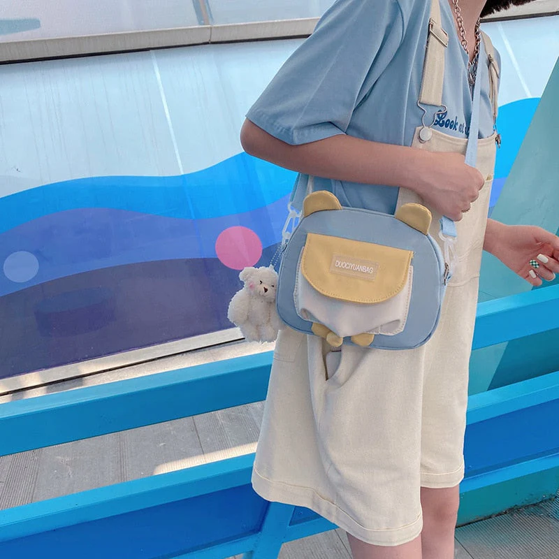 deanwangkt Japanese Style Lovely Small Bag Women Cartoon Bear Ears Nylon Bag Student Girl Crossbody Bags For Women Bolsa Mujer Shoulder Bag