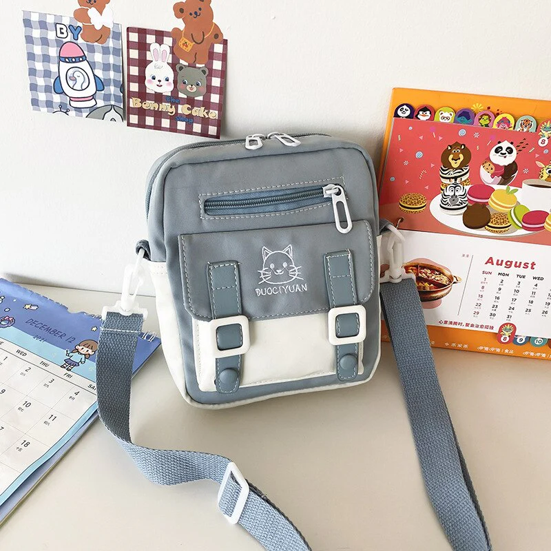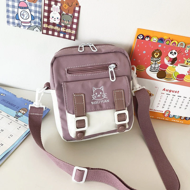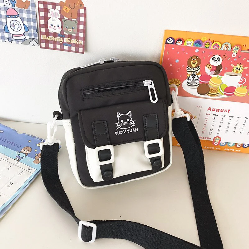deanwangkt Japanese Kawaii Bag Girls Small Crossbody Bags For Women Cat Embroidery Nylon Bag Mini Shoulder Bag Mobile Phone Bag Purses