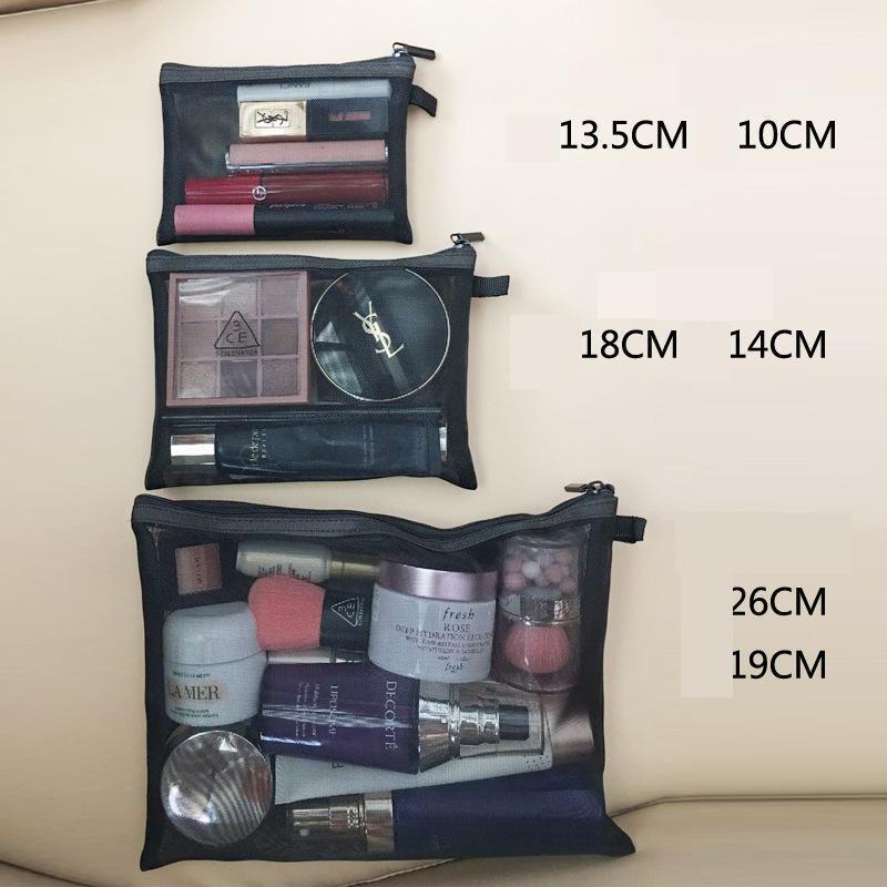 deanwangkt Portable Makeup Bag Black Mesh Fashion S/M/L Set Cosmetic Bag Lipstick Bag Kosmetyczka Neceser Mujer Toiletry Bag Make Up Bag