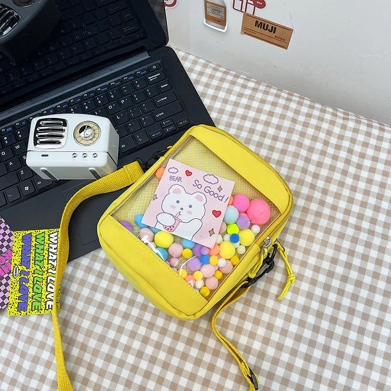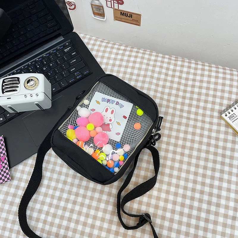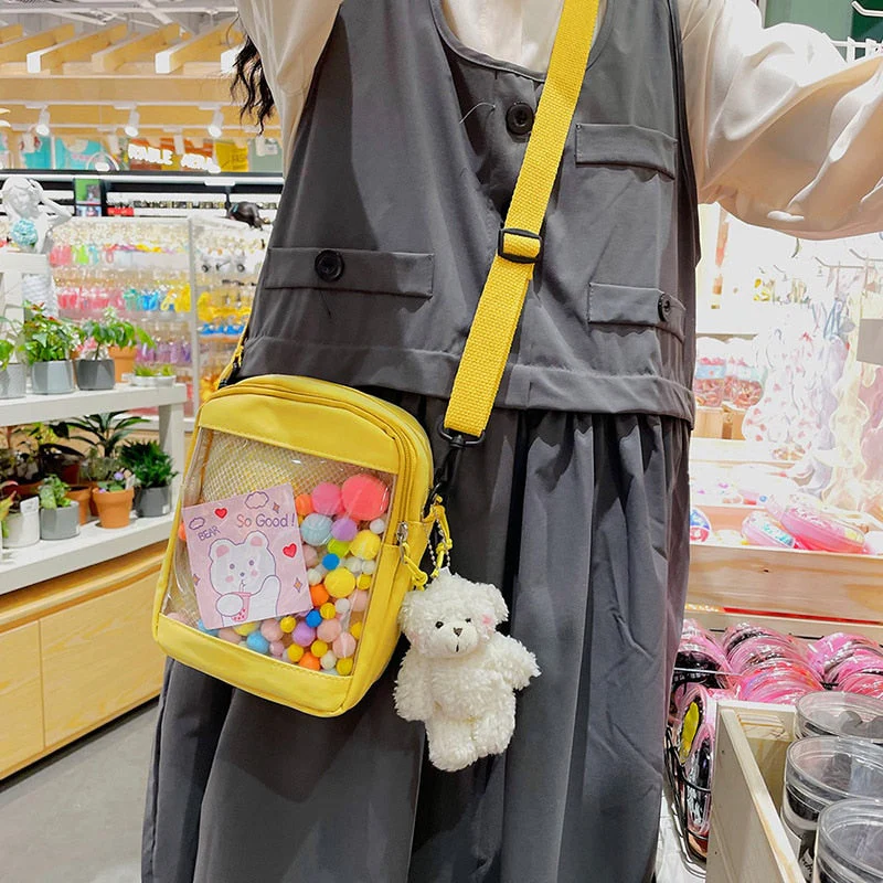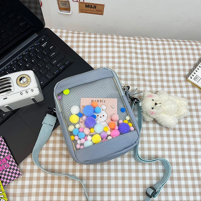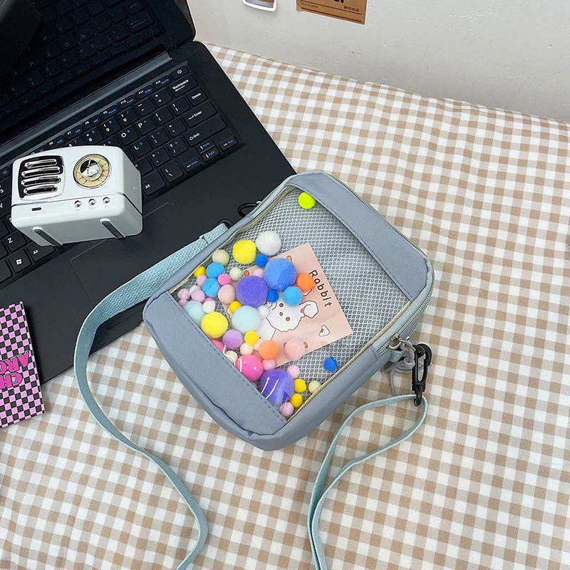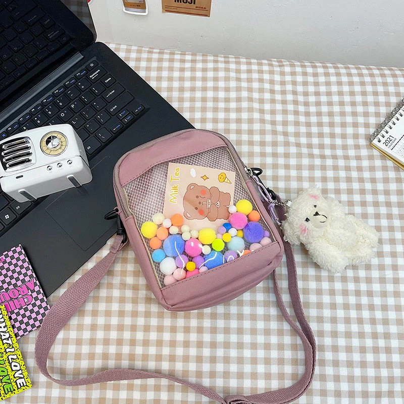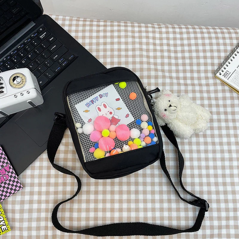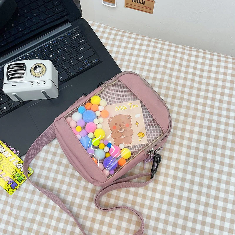 deanwangkt Japanese Style Kawaii Bag Women itabag Transparent Pocket Colorful Hairballs Crossbody Bags Women Shoulder Bag With Card Bolsos