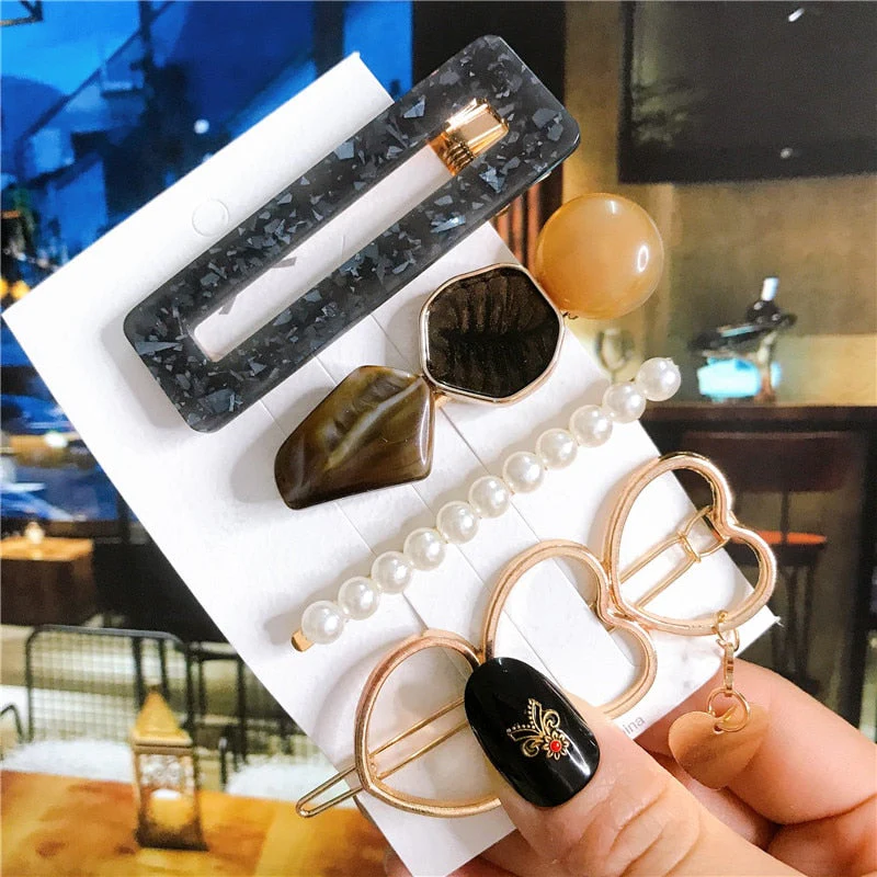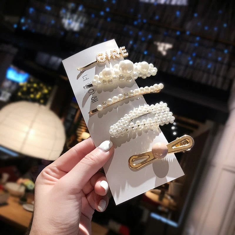 deanwangkt 1Set Handmade Pearls Hair Clips Pin for Women Fashion Geometric Flower Barrettes Headwear Girls Sweet Hairpins Hair Accessorie