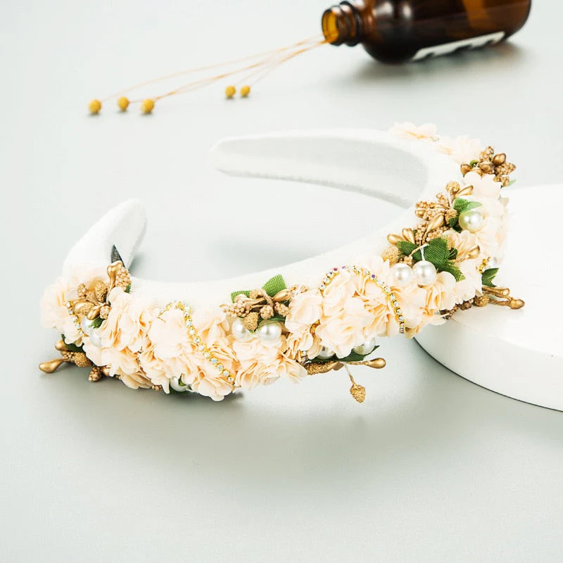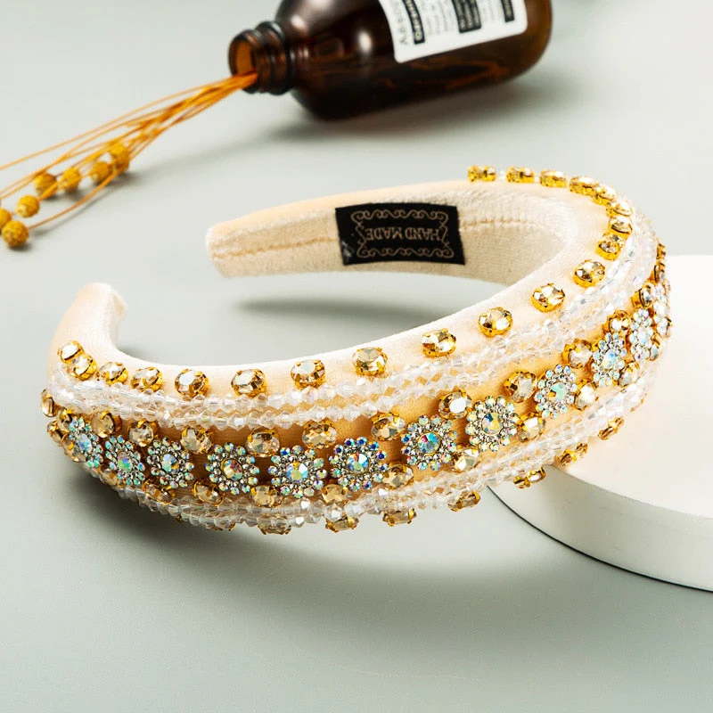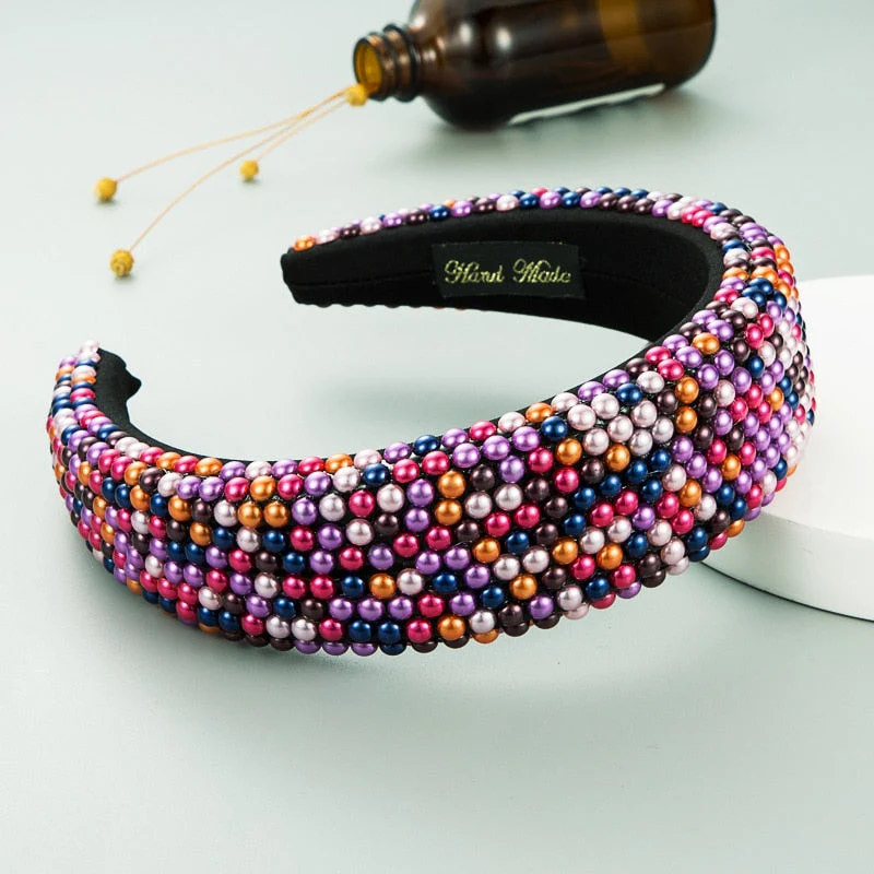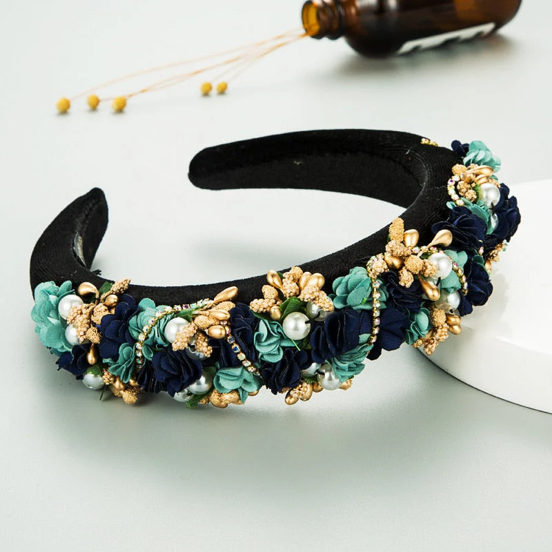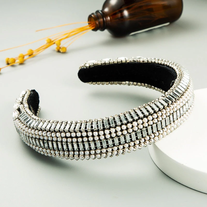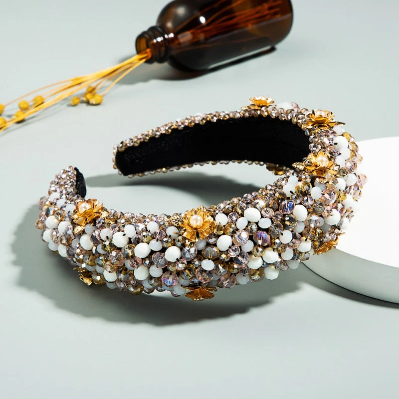 Luxury Baroque Diamond Headbands Boutique Hair Accessories Women Heavy Industry Color Rhinestone Pearl Flower Hairband Hair Hoop