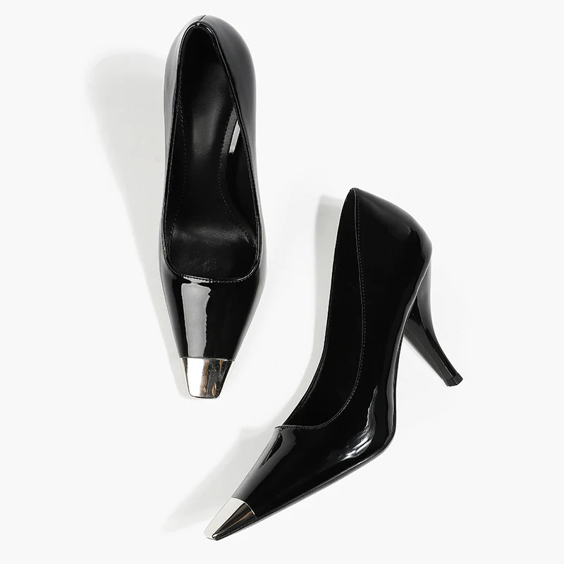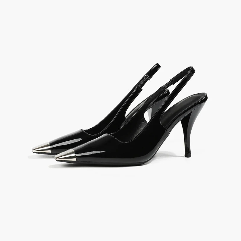 DEANWANGK Grape Mom Same Shoes New Single Layer Shoes Elegant Pointed High Heel Shoes Patent Leather Back Empty Stiletto Sandals Women