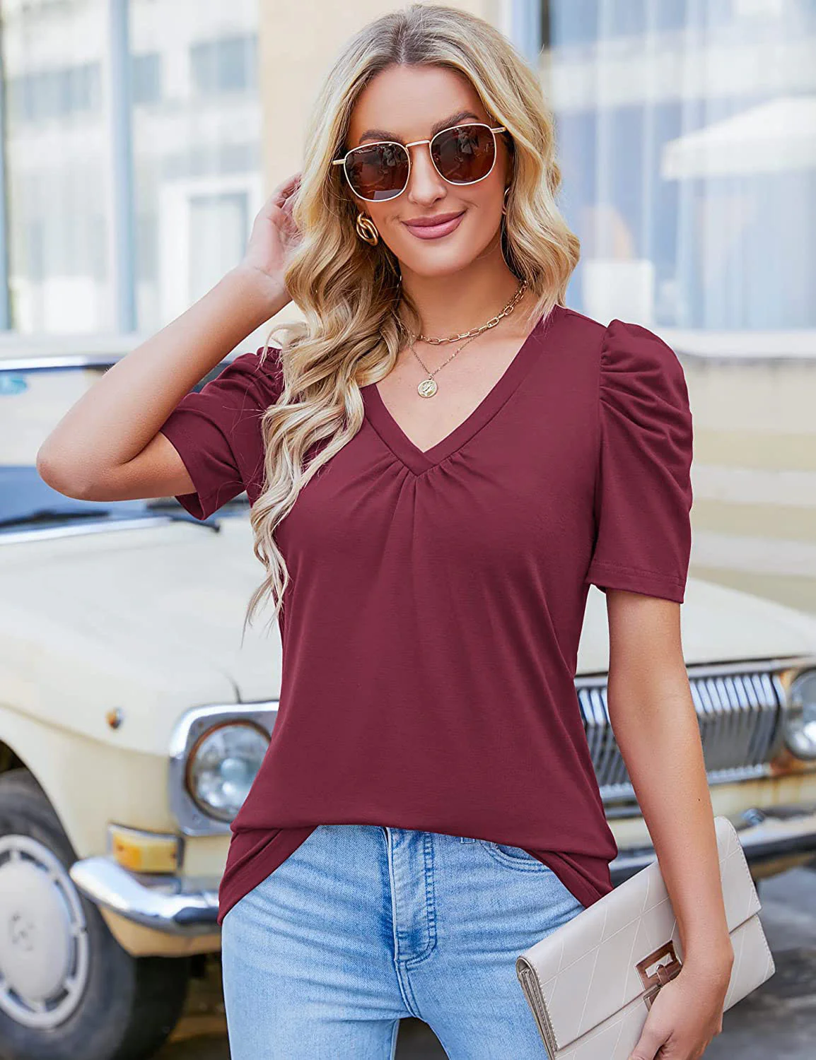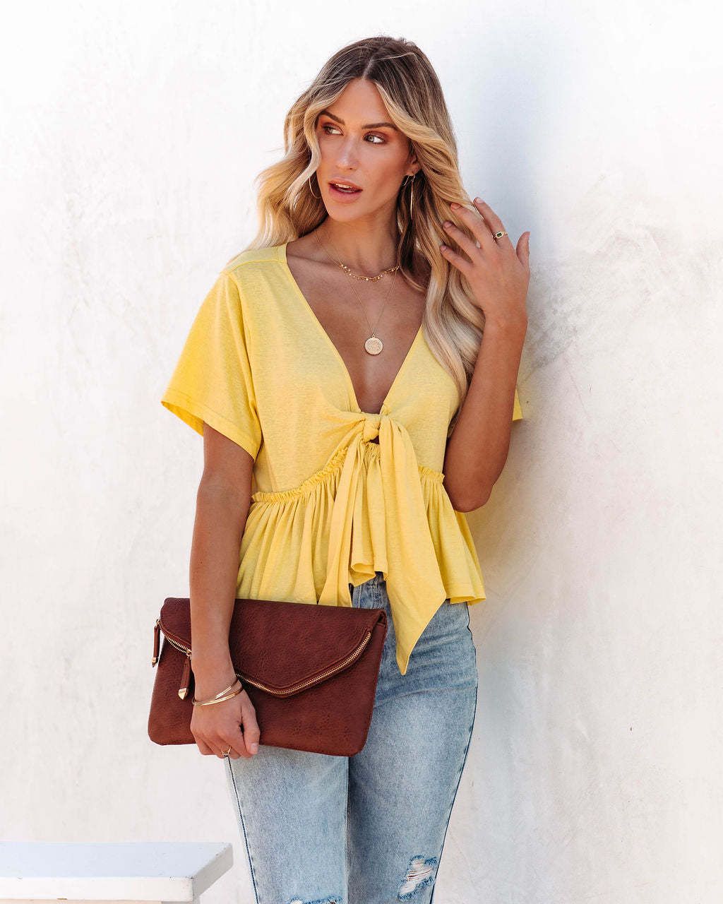 DEANWAQNGKT Summer New Cross Border Women's Clothing Pure Color Cotton Loose Short Sleeve Lace-up Ruffled Top for Women