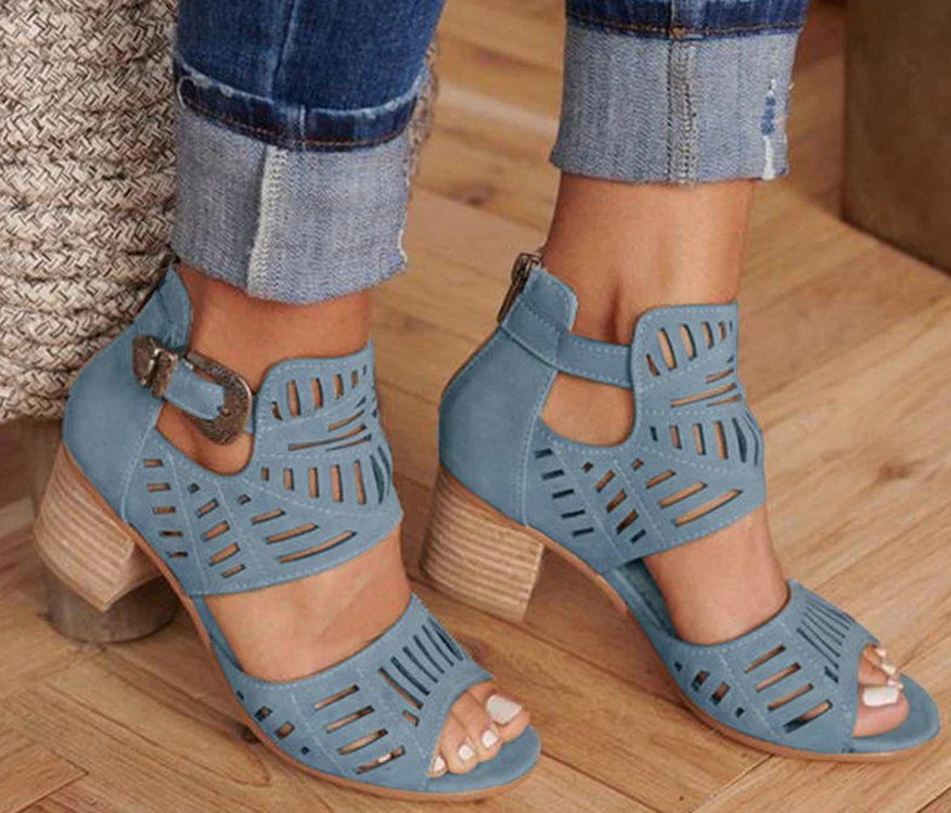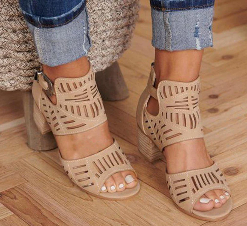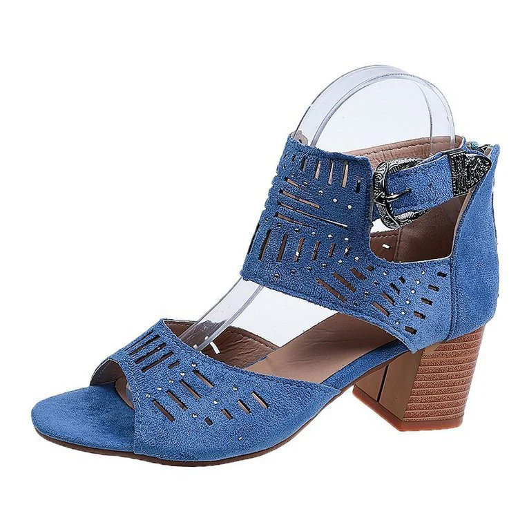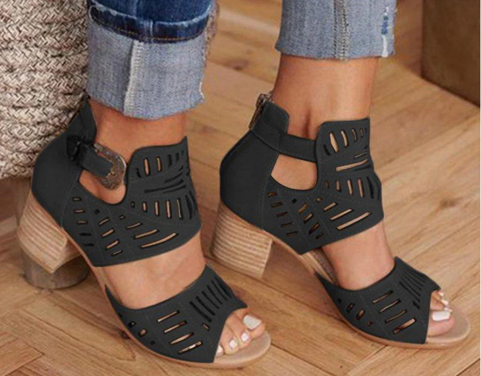 DEANWANGKT In Stock 2022 Spring and Summer New Foreign Trade plus Size European and American Side Zipper Peep Toe Chunky Heel Women's High Heel Sandals