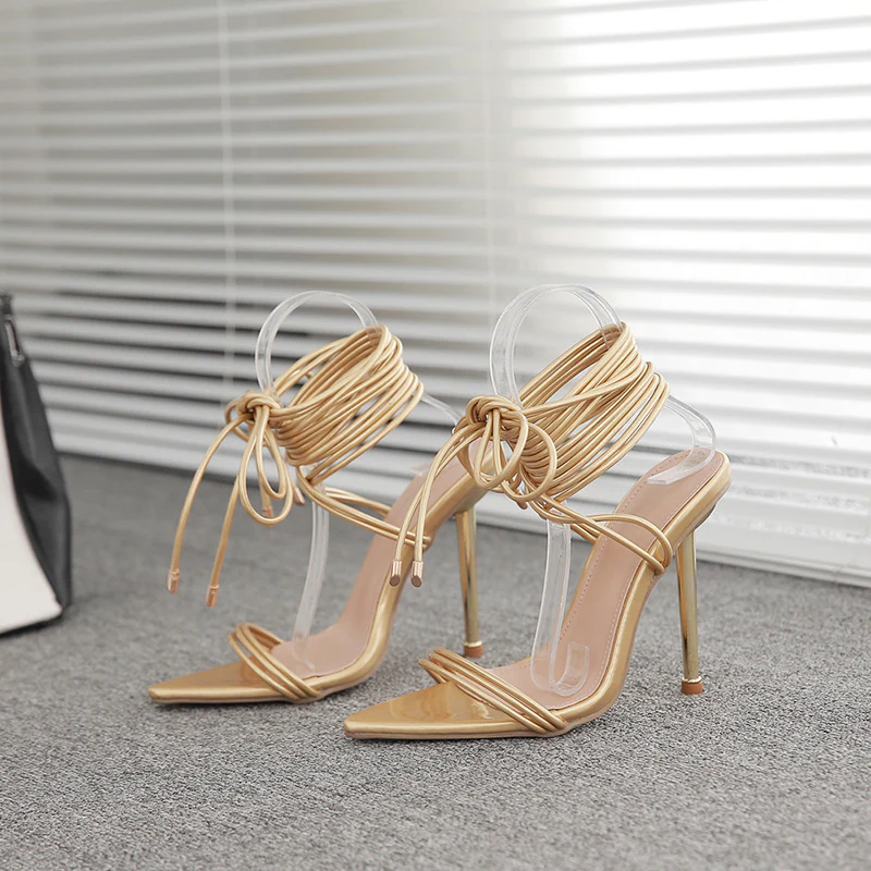 DEANWANGKT 2022 European and American Station Foreign Trade Sexy Pointed Cross Strap Electroplated Heel Stiletto Heel Sandals for Women 43