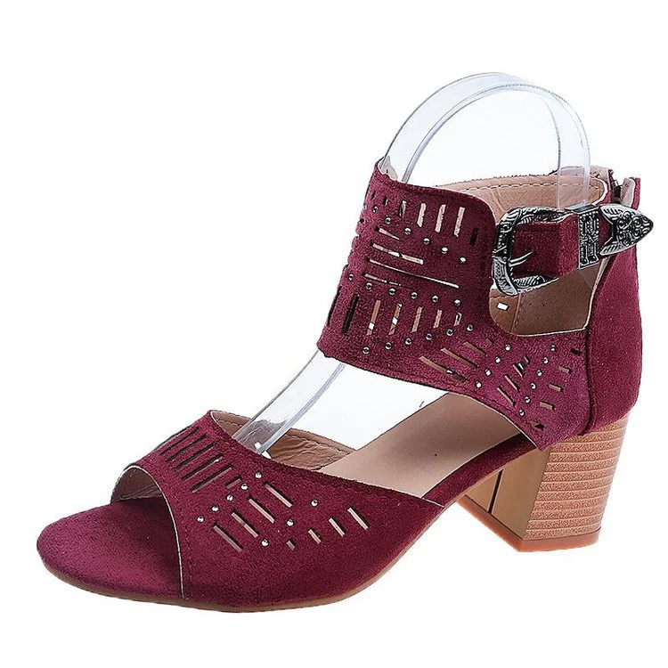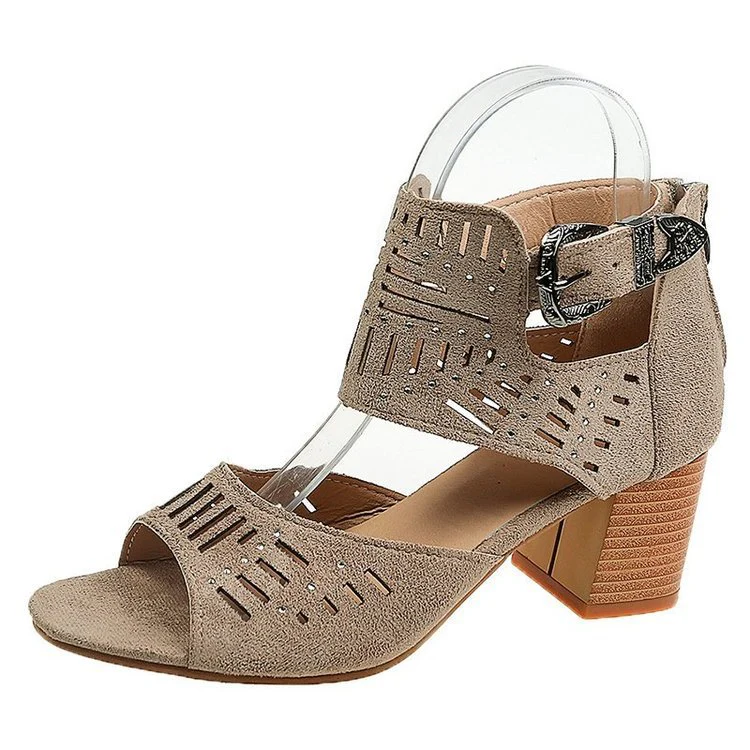 DEANWANGKT Wish Cross-Border plus Size Sandals Women's New Rhinestone Chunky Heel High Heel Buckle Peep Toe Sandals Wholesale
