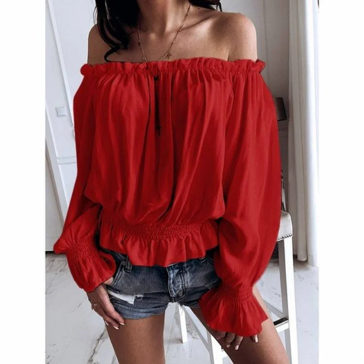 DEANWANGKT New European and American Women's Slim-Fit Casual off-Shoulder Solid Color Fashion Slim and Sexy Top