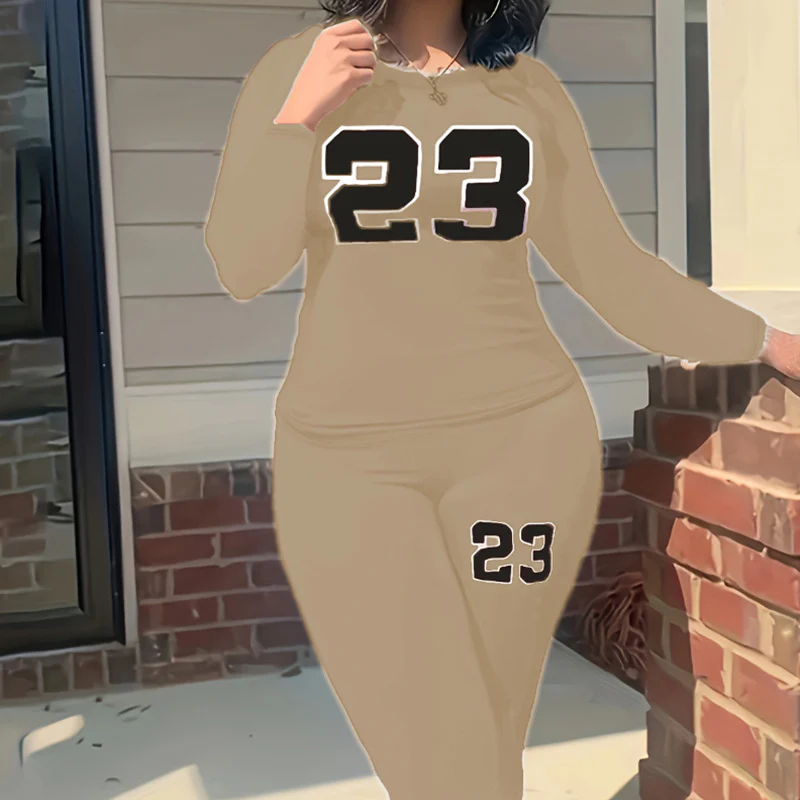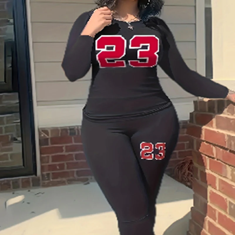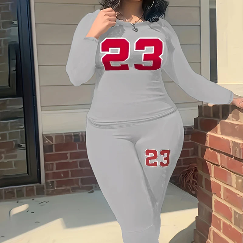 DEANWANGKT Cross Border Women's plus Size Women's Sports Long-Sleeved T-shirt Skinny Pants Fashion Casual Two-Piece Suit