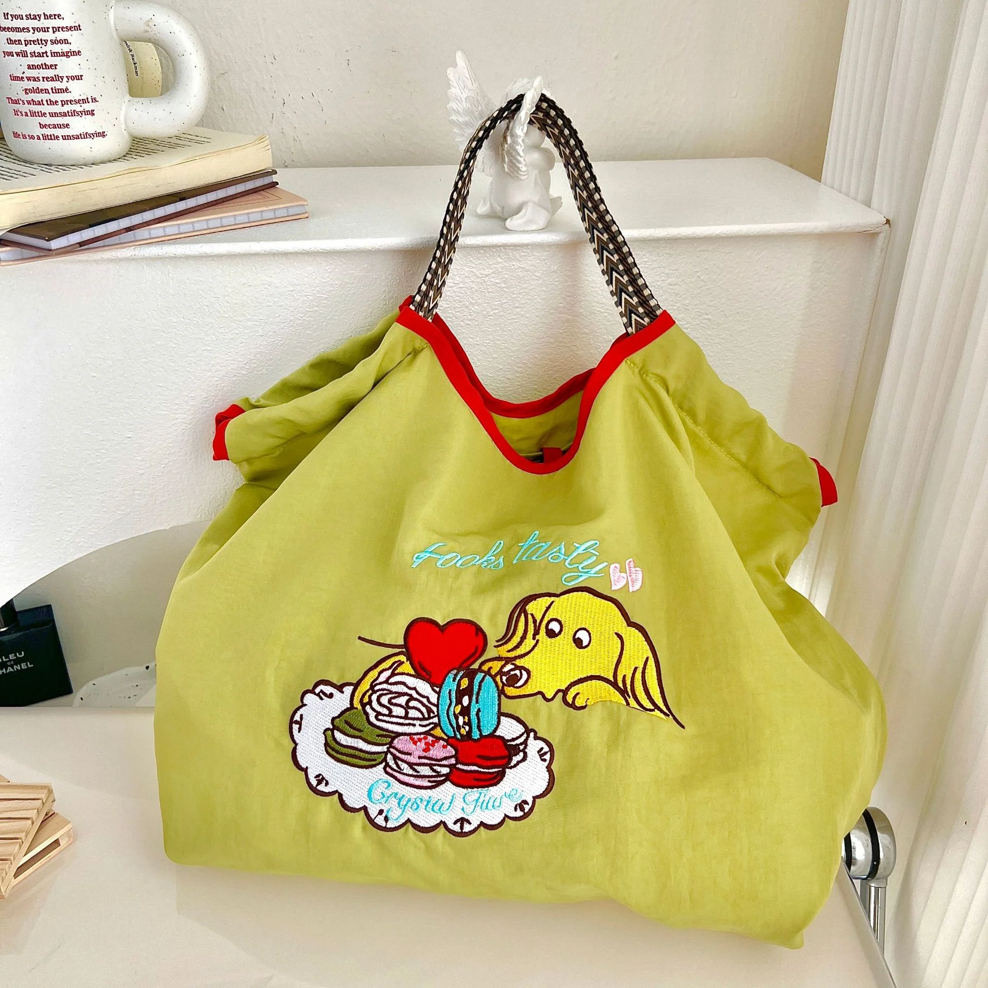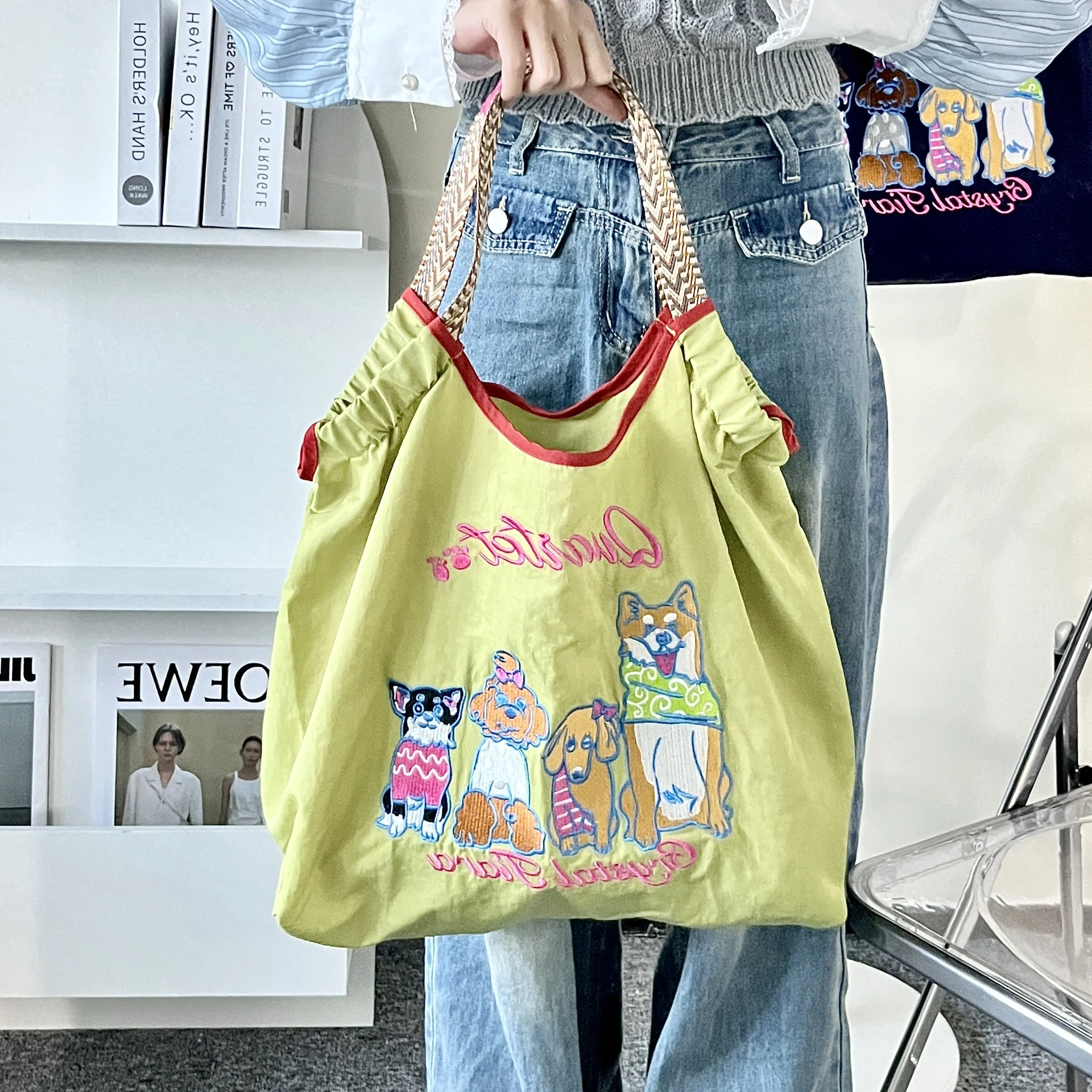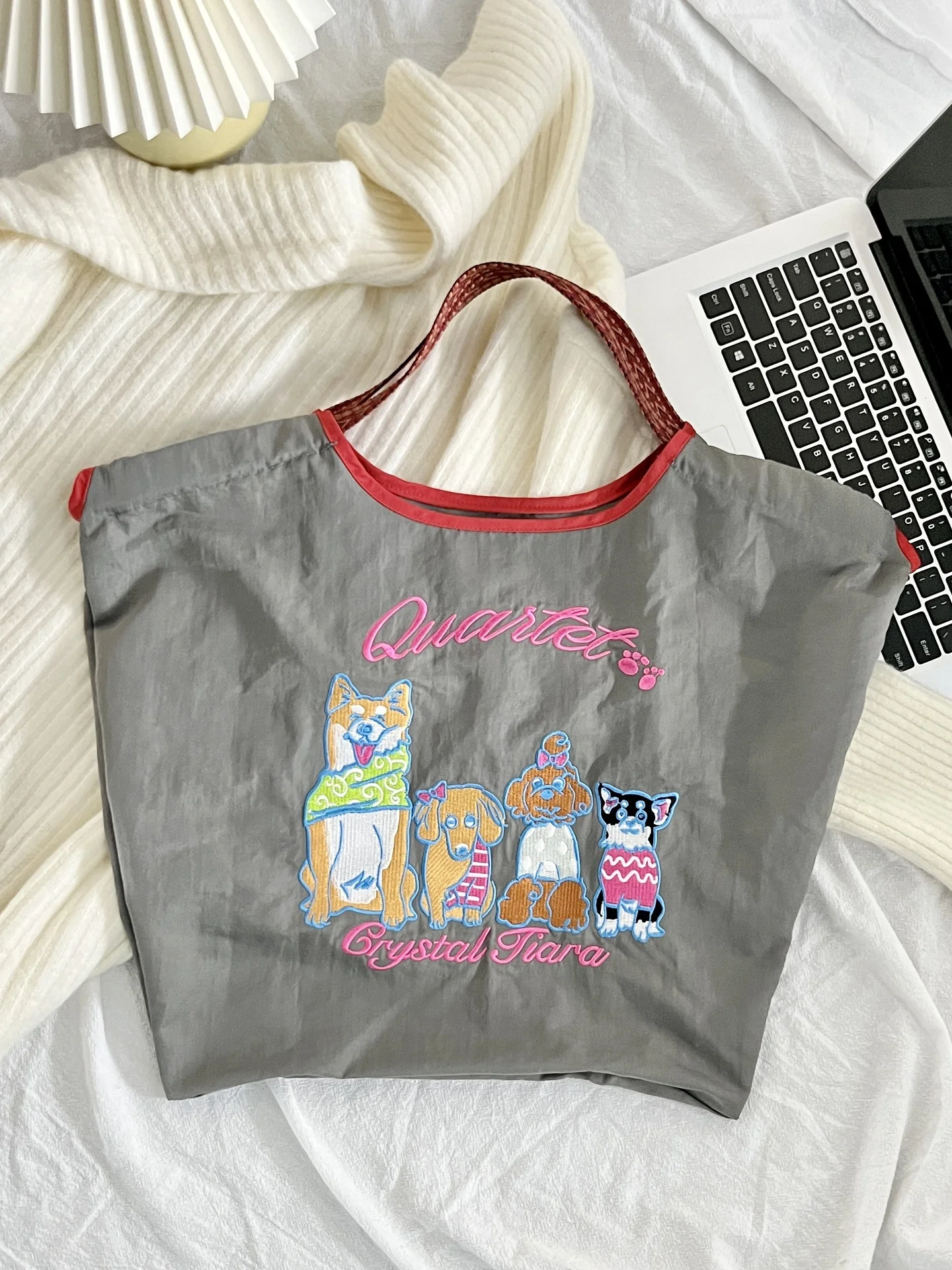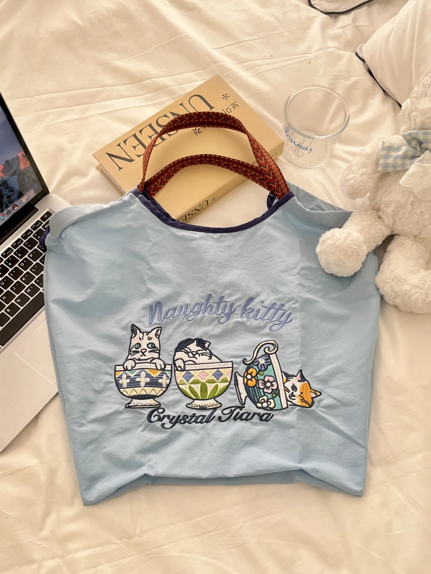 Japanese Cat Shiba Inu Embroidered Environmental Protection Cloth Bag Female Large Capacity New Nylon Handbag Student All-Match Shoulder Bag