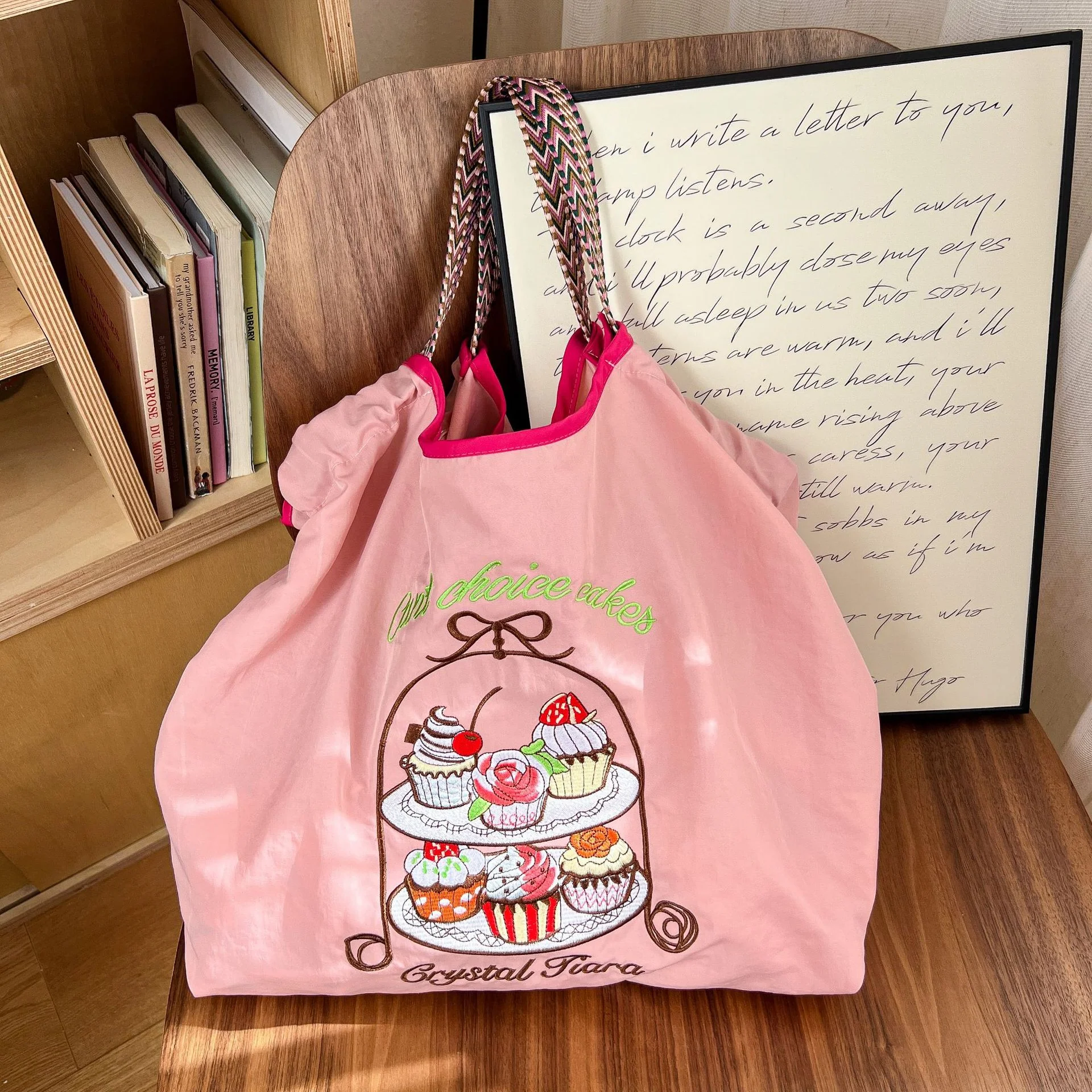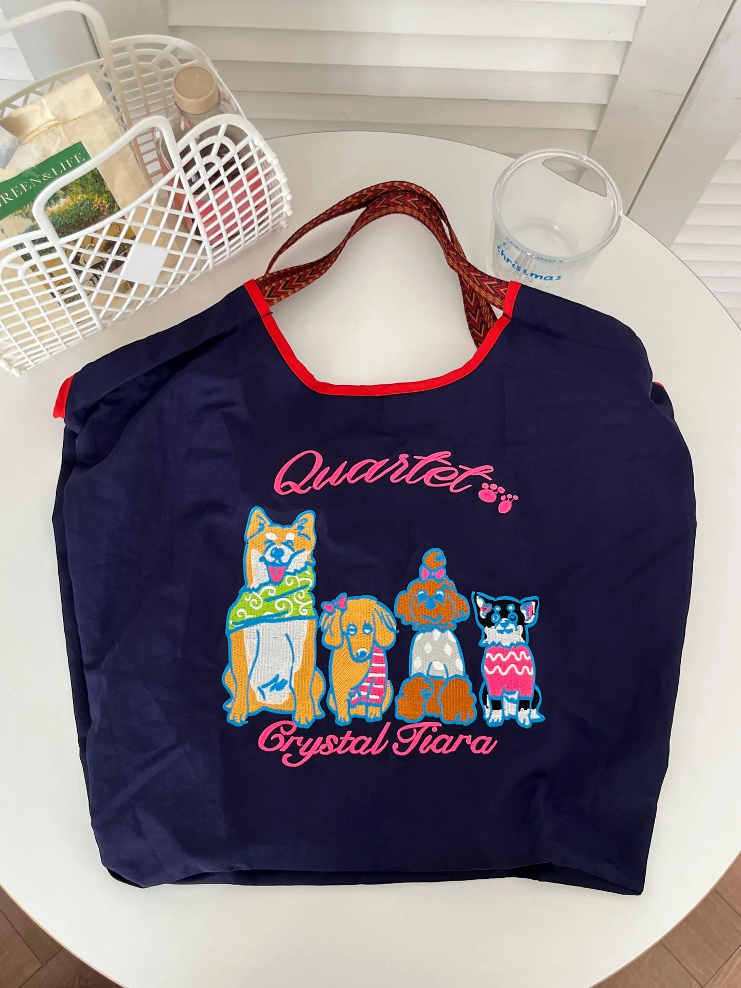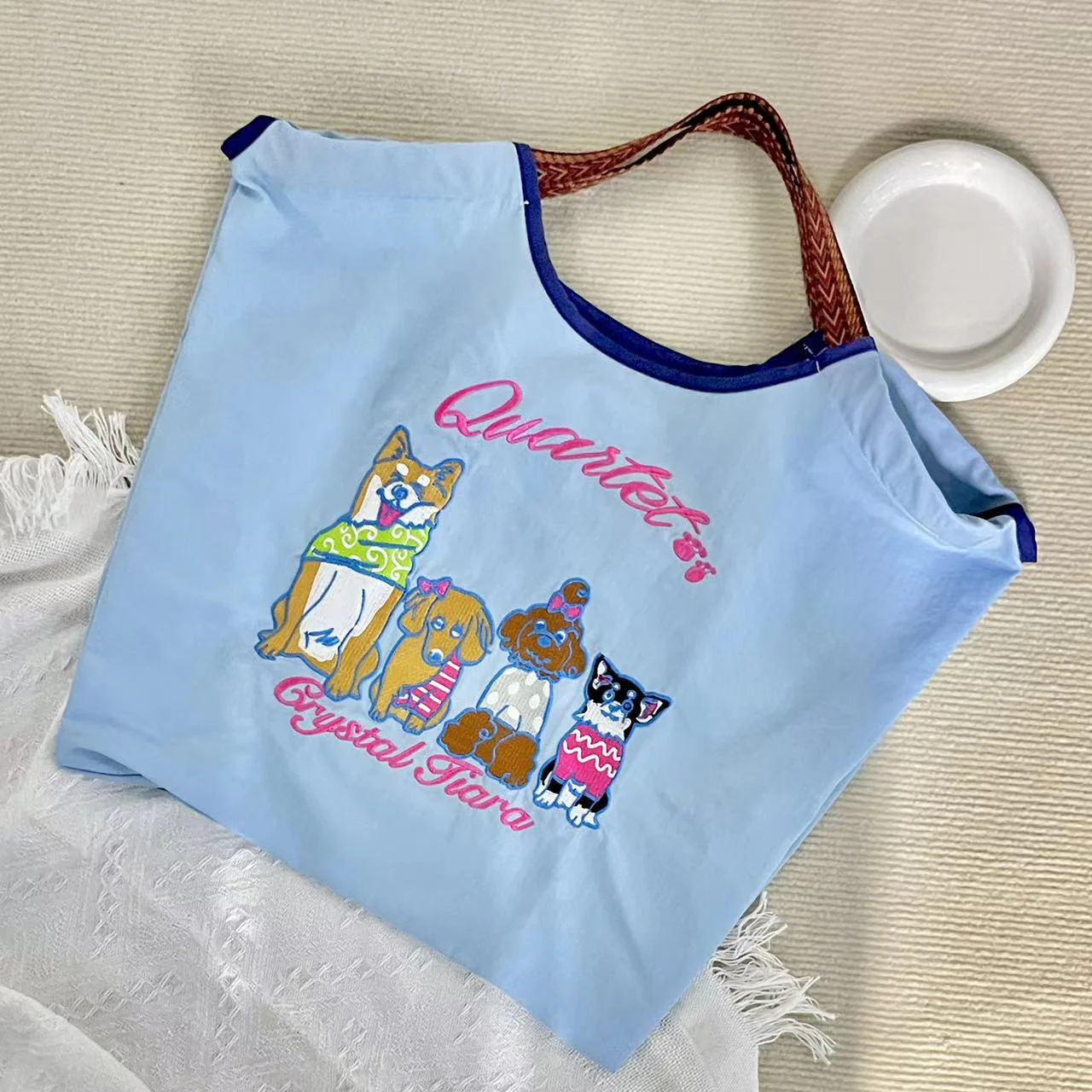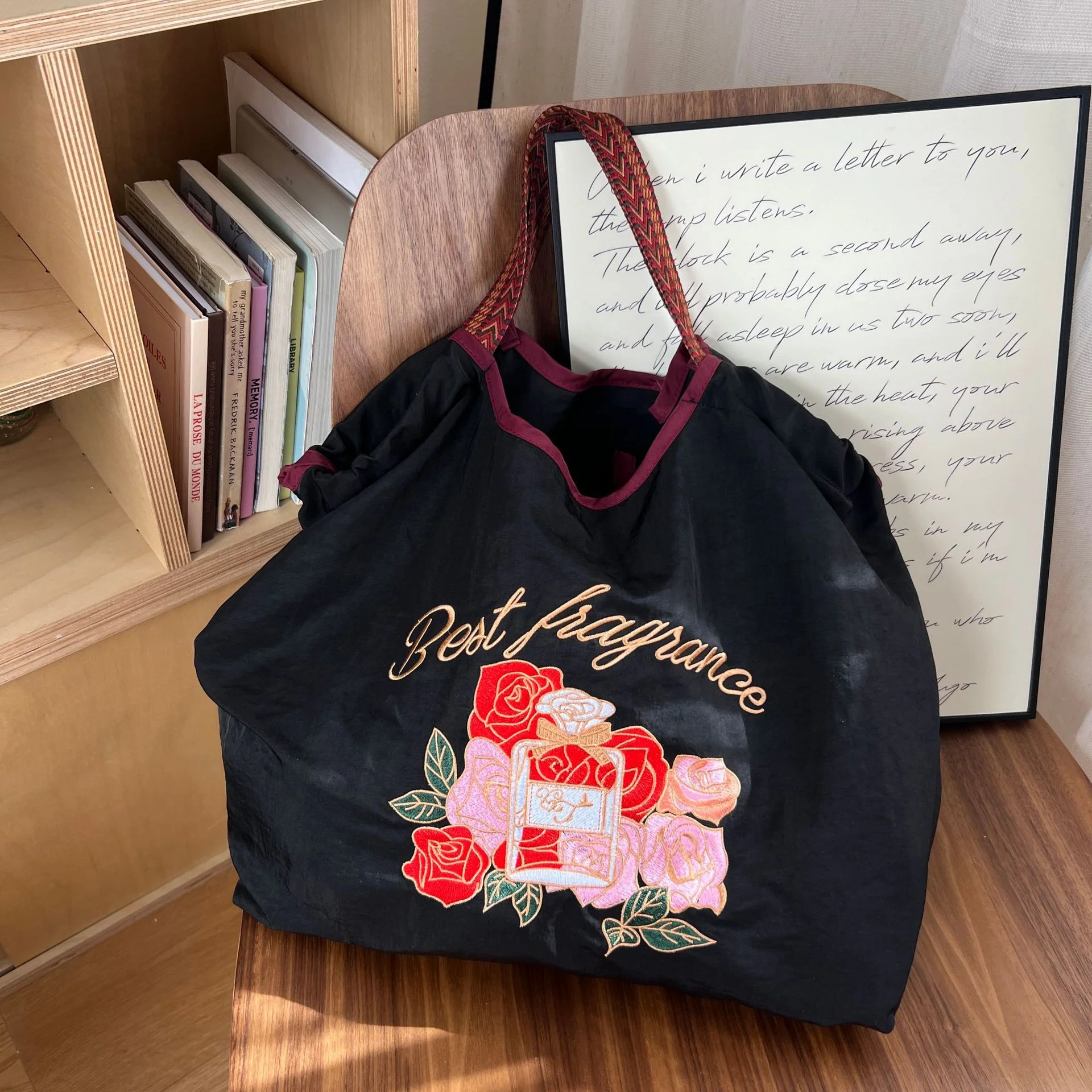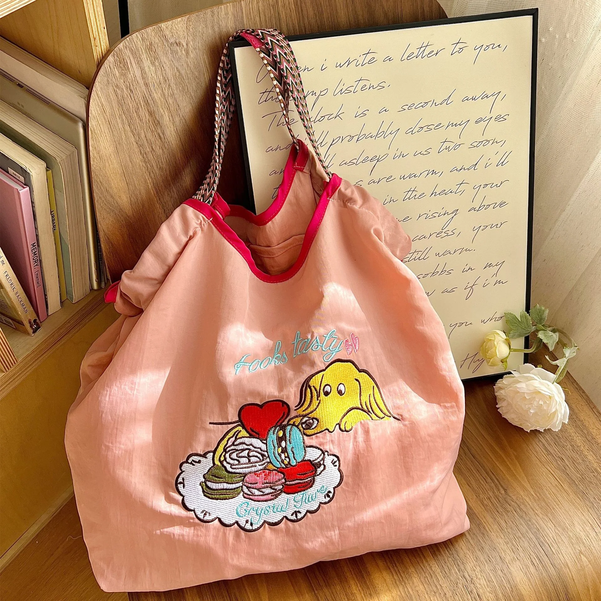 Japanese Cat Shiba Inu Embroidered Environmental Protection Cloth Bag Female Large Capacity New Nylon Handbag Student All-Match Shoulder Bag