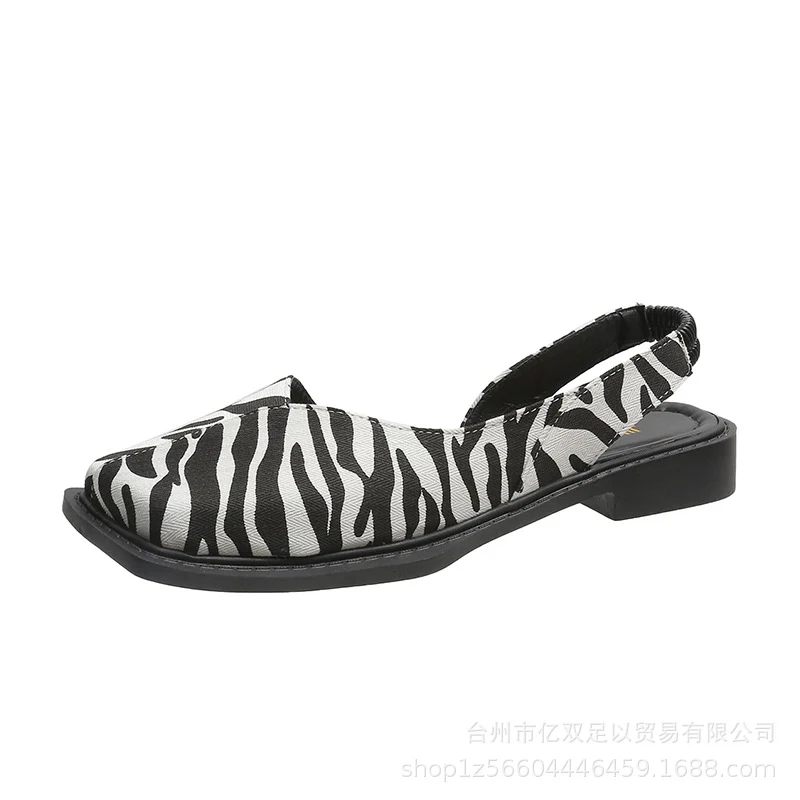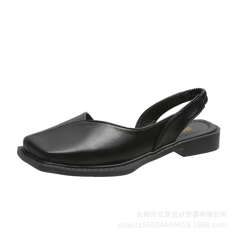 DEANWANGKT Summer New Women's Casual Simple Solid Color Square Toe Low-Cut Closed Toe Back Strap Fashion Elastic Band Sandals