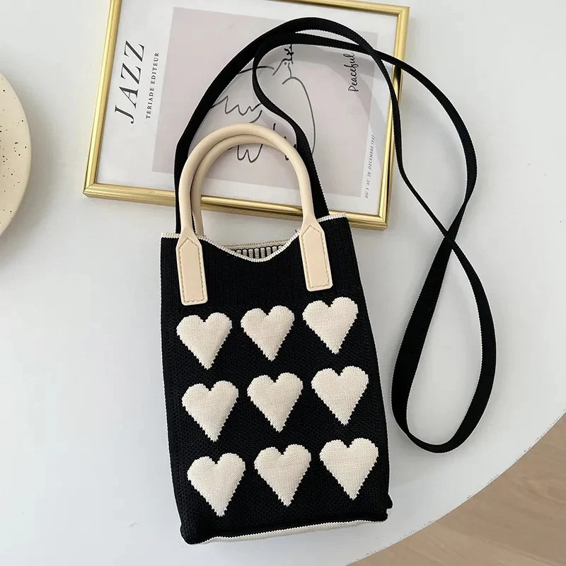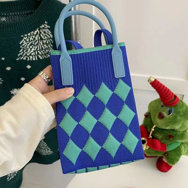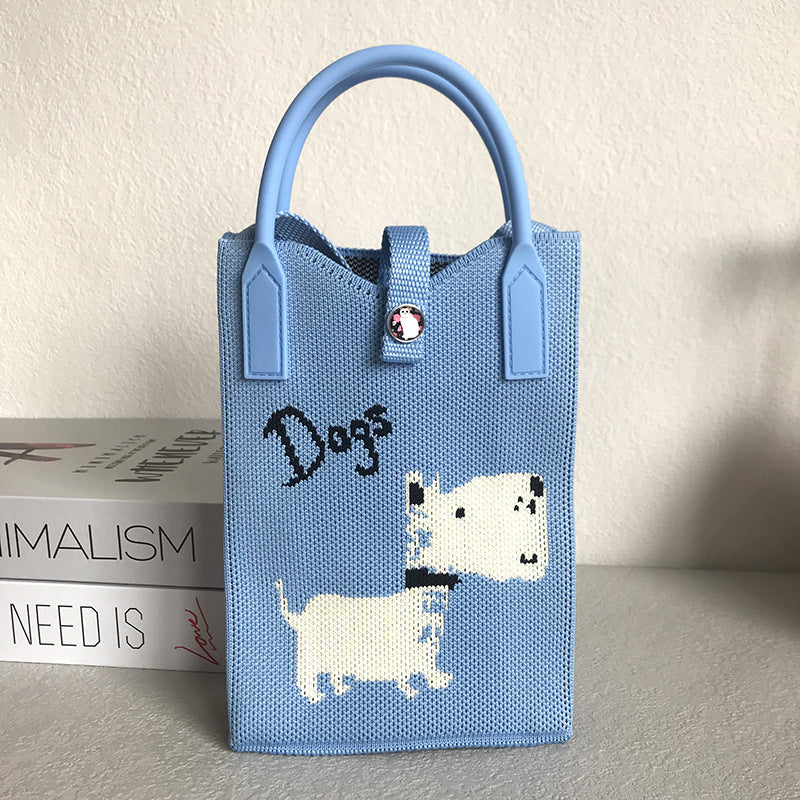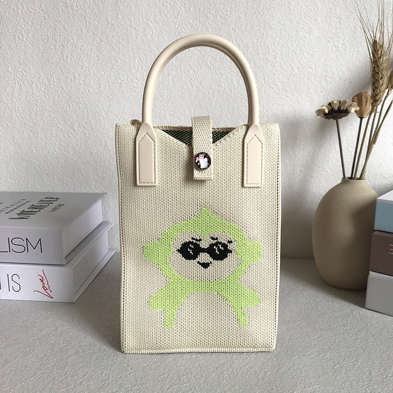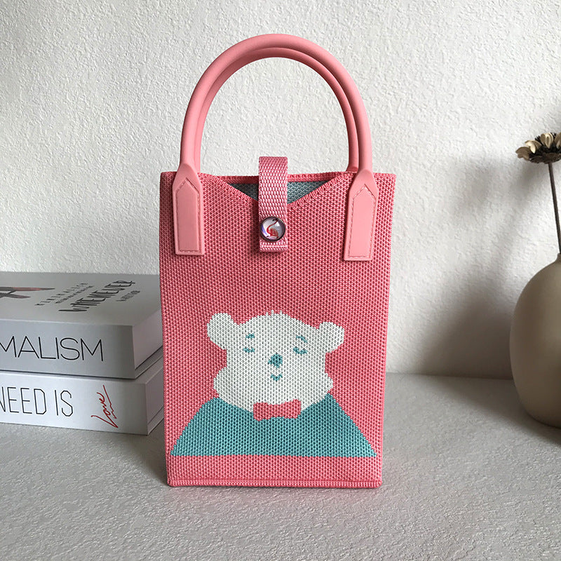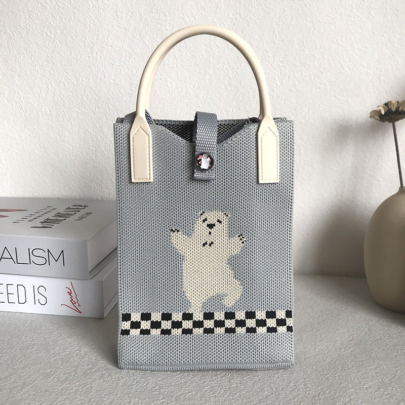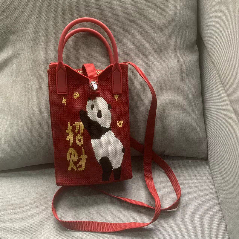 Korean Style New Niche Panda Shoulder Crossbody Phone Bag Knitted Bag Handbag Personal Leisure Women's Fashion