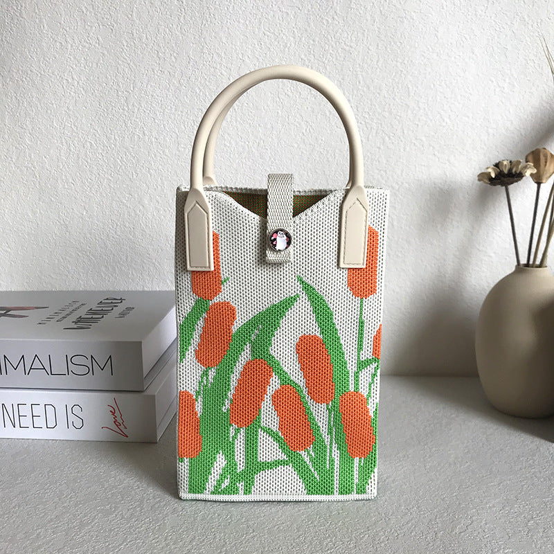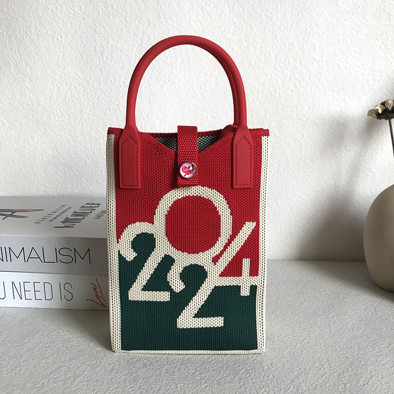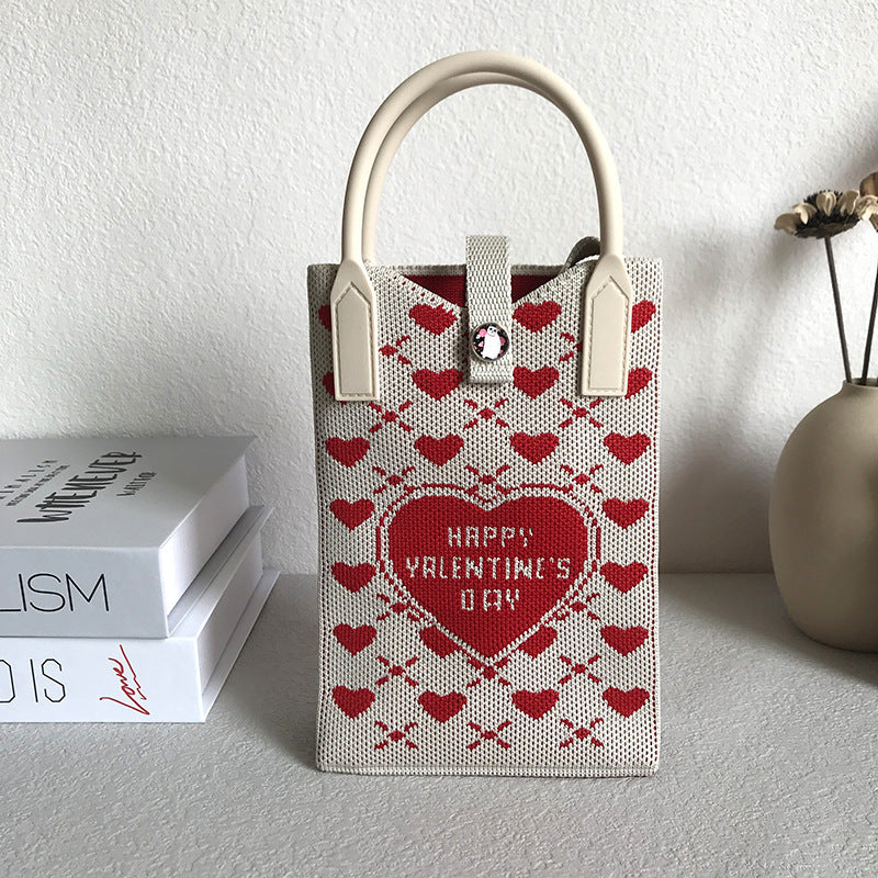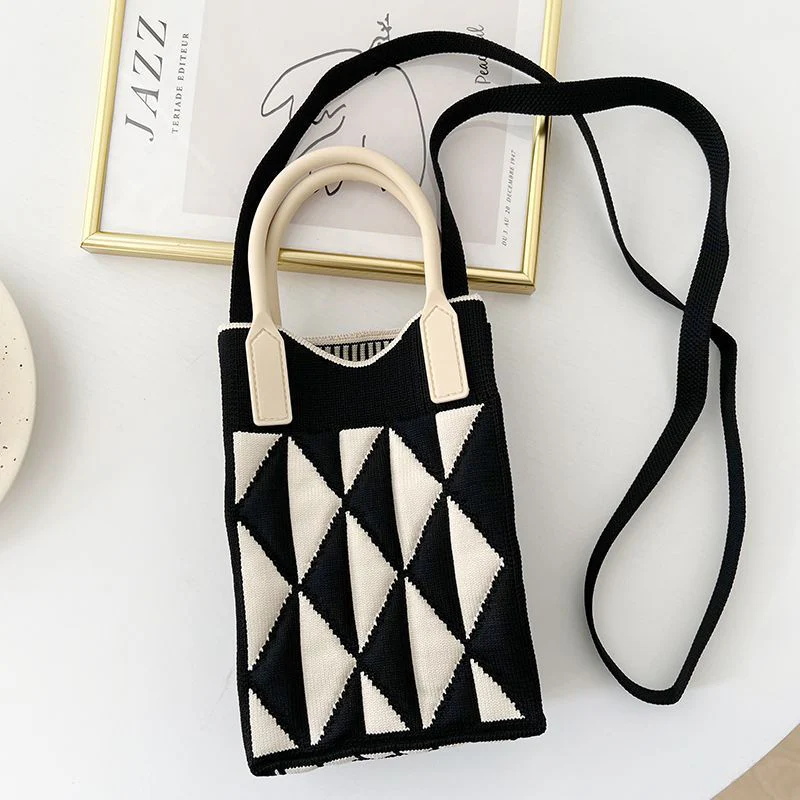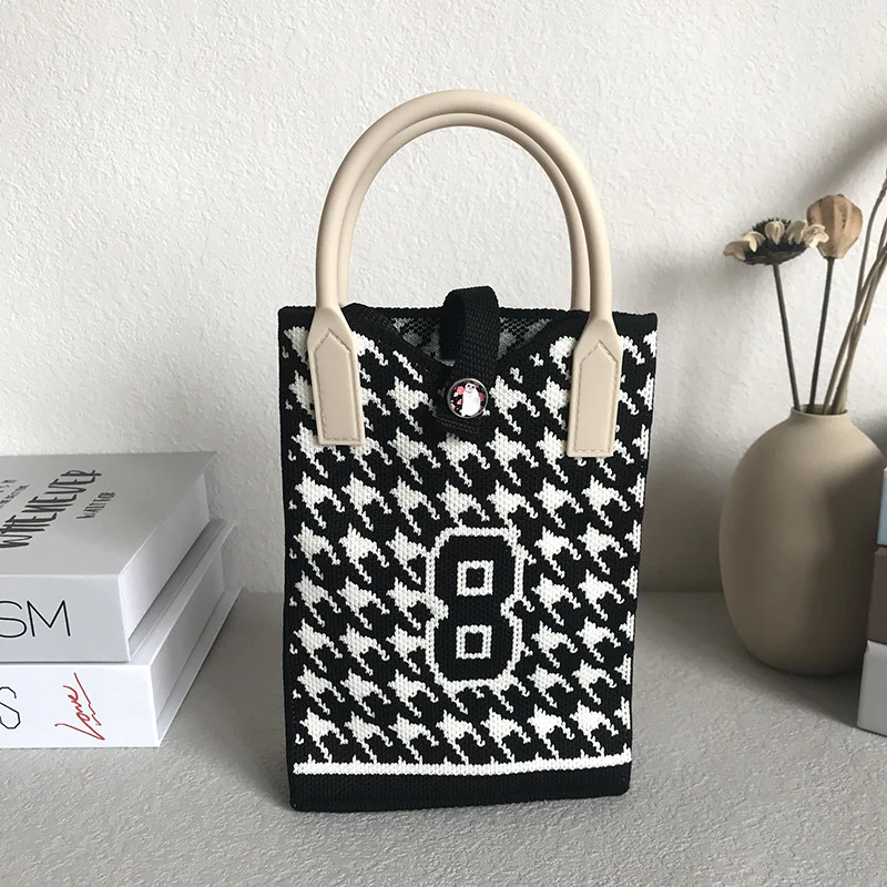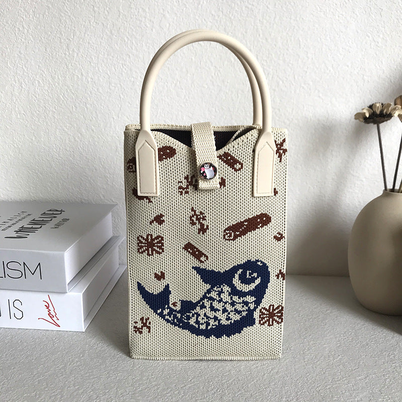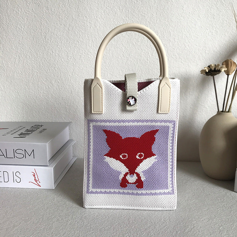 Korean Style New Niche Panda Shoulder Crossbody Phone Bag Knitted Bag Handbag Personal Leisure Women's Fashion
