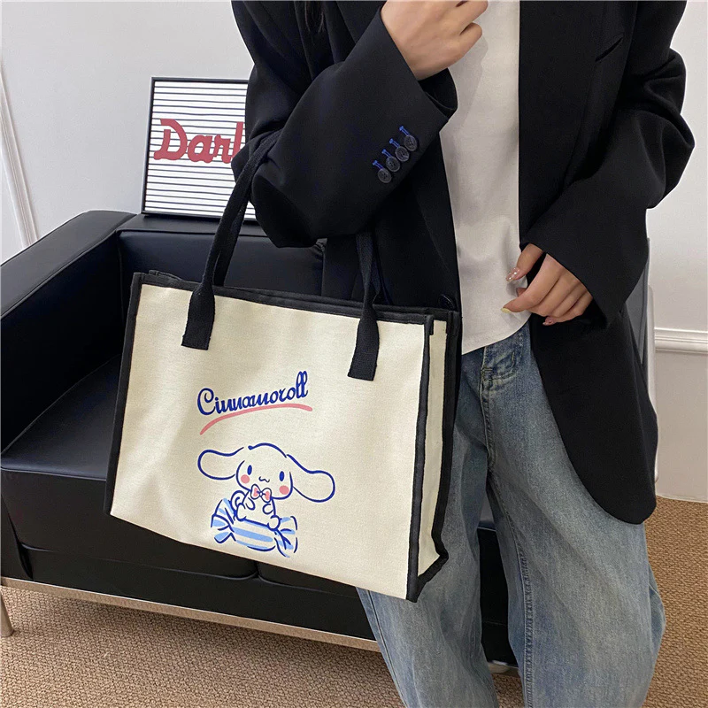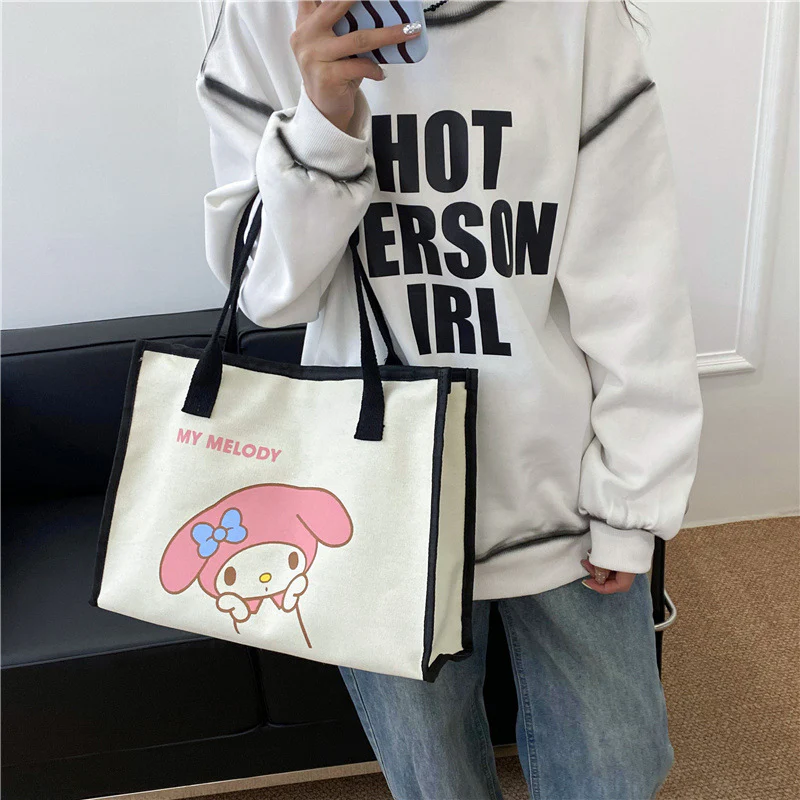 Cartoon Clow M Printed Canvas Bag Women's Sanrio Melody Shoulder Bag Fashion All-Match Underarm Tote Bag