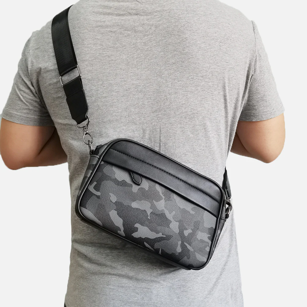 deanwangkt Fashion Men's Check Pattern Shoulder Bag Pu Daily Commuter Small Square Bag Crossbody Bag