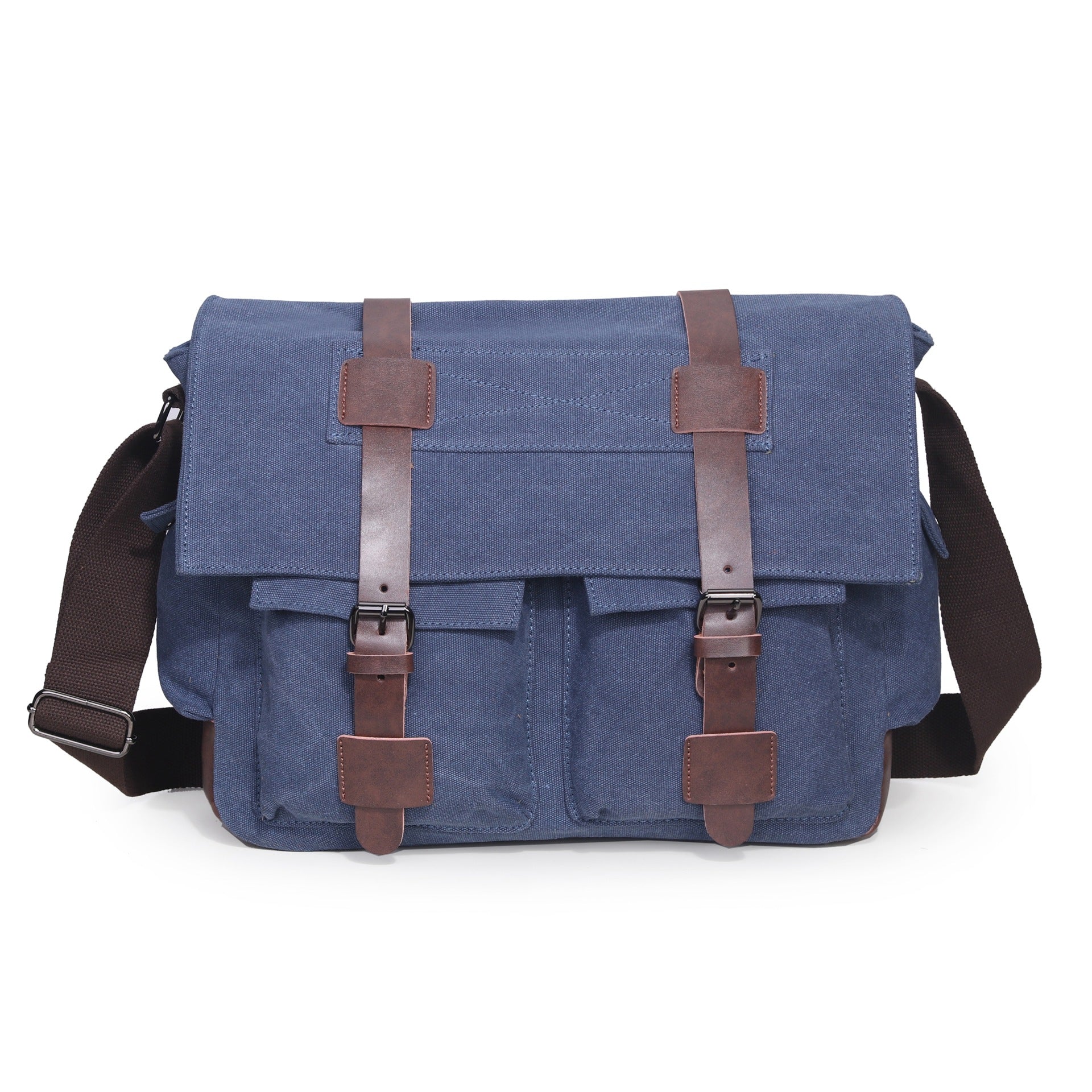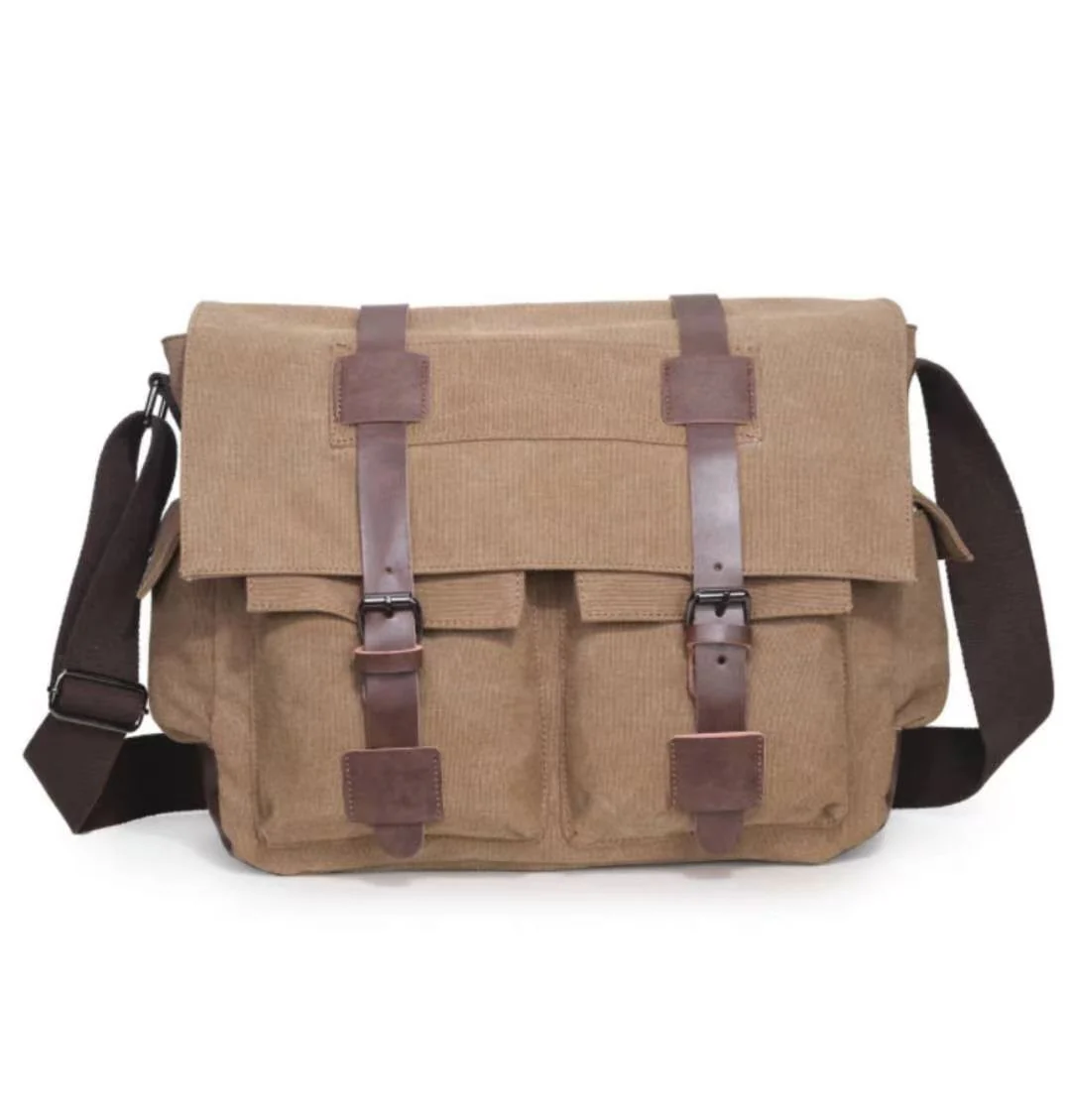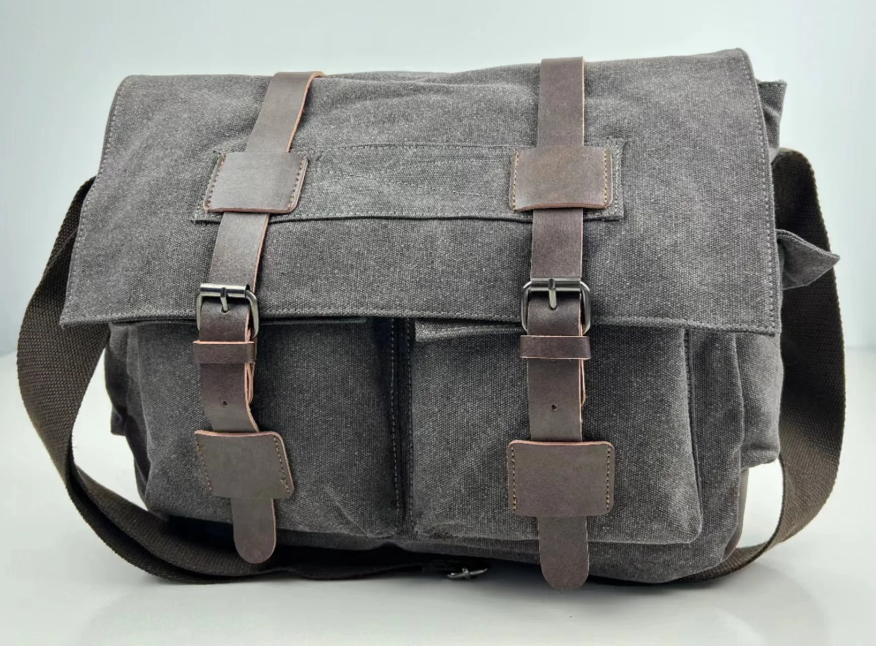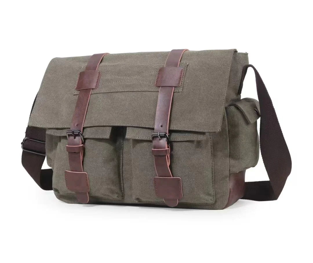 deanwangkt European and American Canvas Casual Business Messenger Bag Hip-Hop Street Men's Computer Shoulder Bag Multi-Pocket Student Messenger Bag