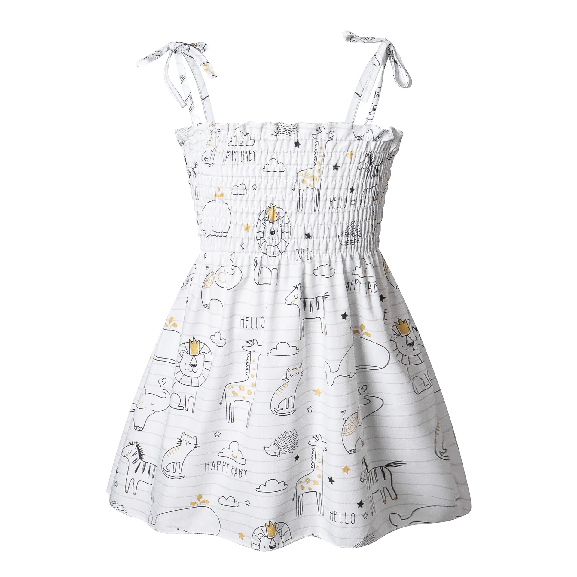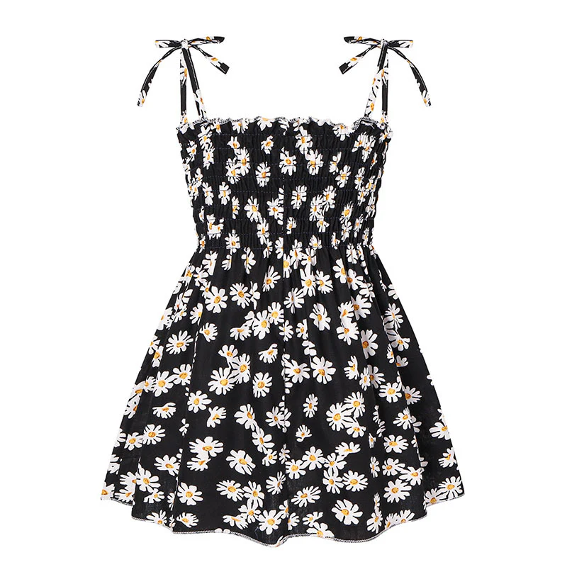 Summer New Beach Children Princess Dress Girls Solid Color Printing Cotton Suspender Skirt Baby Dress Children Shirt