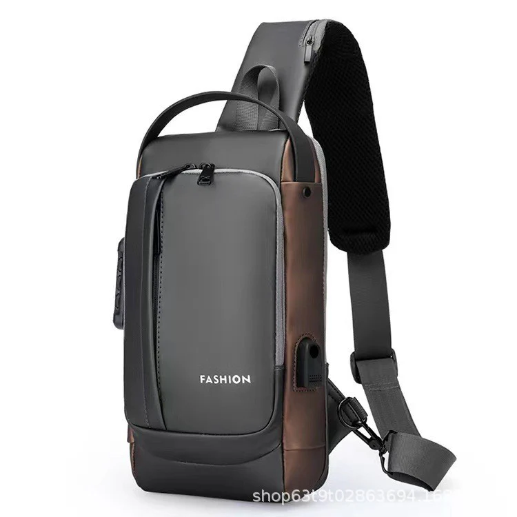deanwangkt Cross-Border Motorcycle Bag Password Anti-Theft Chest Bag Men's Shoulder Bag Large Capacity Casual Men's Bag Multi-Functional Messenger Bag Fashion