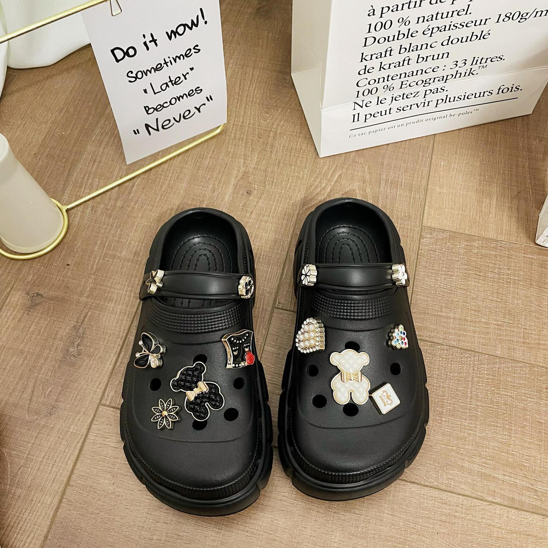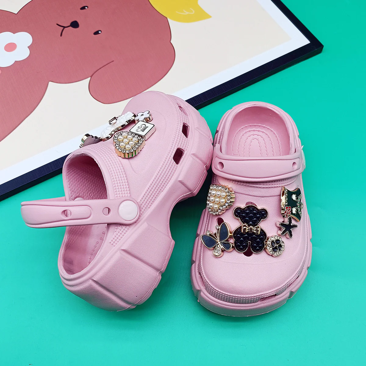 DEANWANGKT New Coros Shoes Children's Summer Slip-on Thick-Soled Non-Slip Soft-Soled Closed Toe Half Slippers for Students