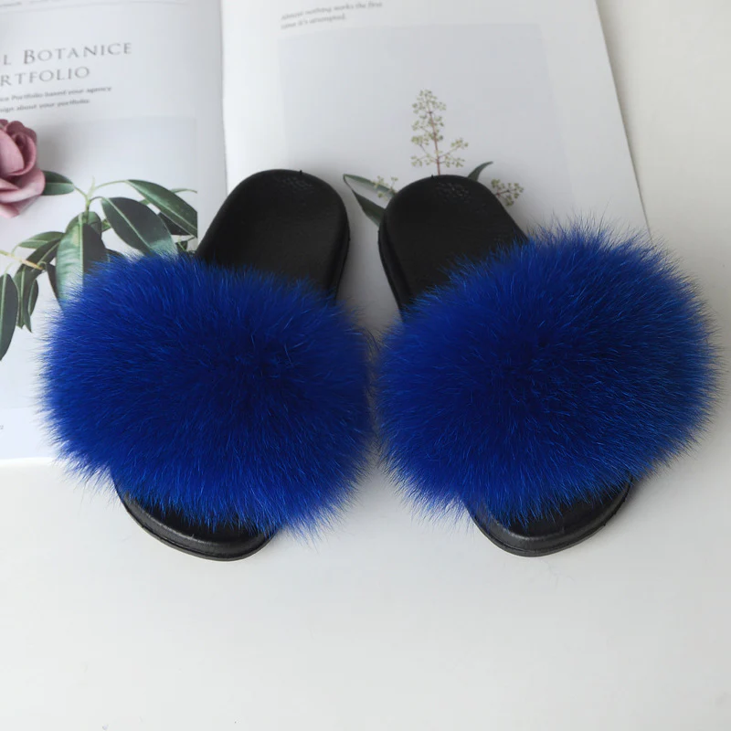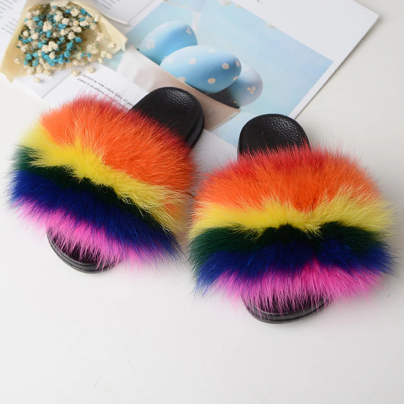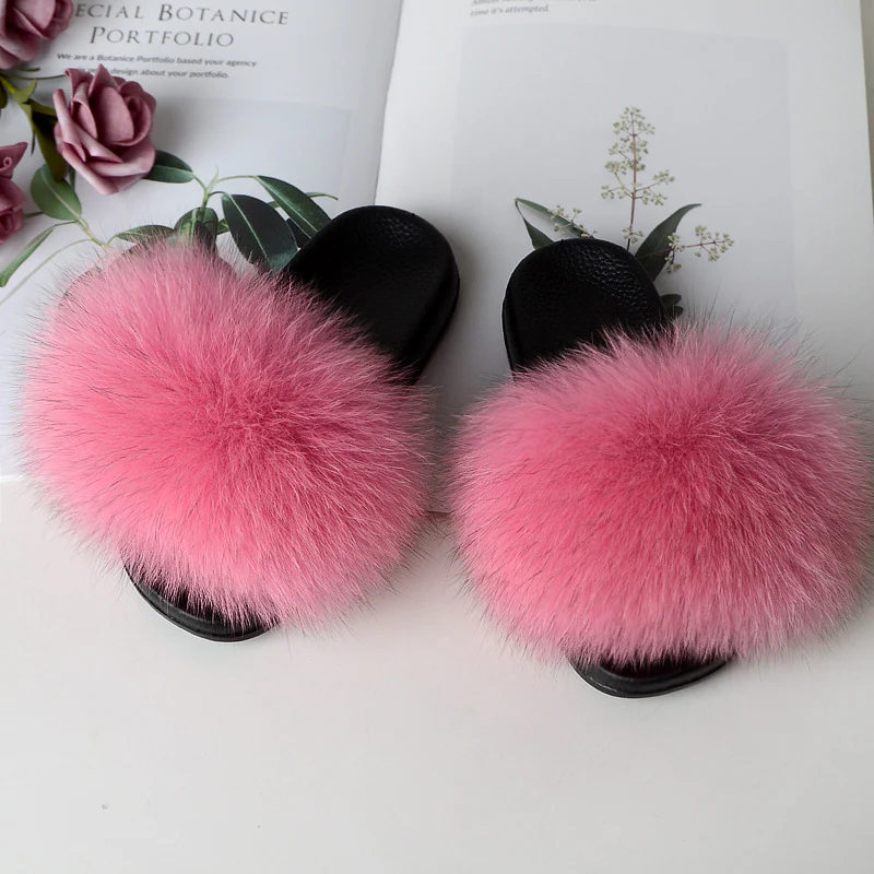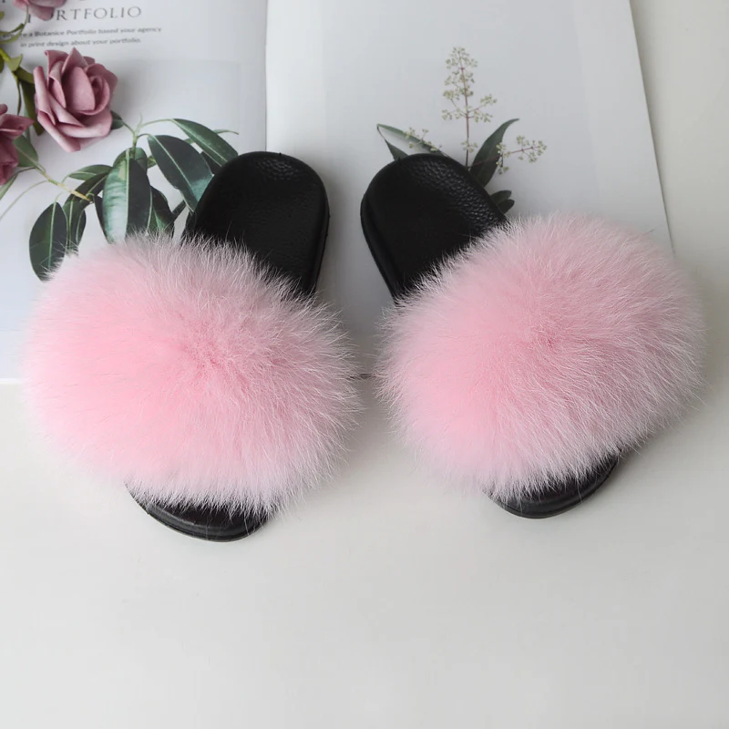 DEANWANGKT Fashion New Parent-Child Children's Slippers Summer Outdoor Plush Sandals Internet Celebrity Fox Fur Flip-Flops