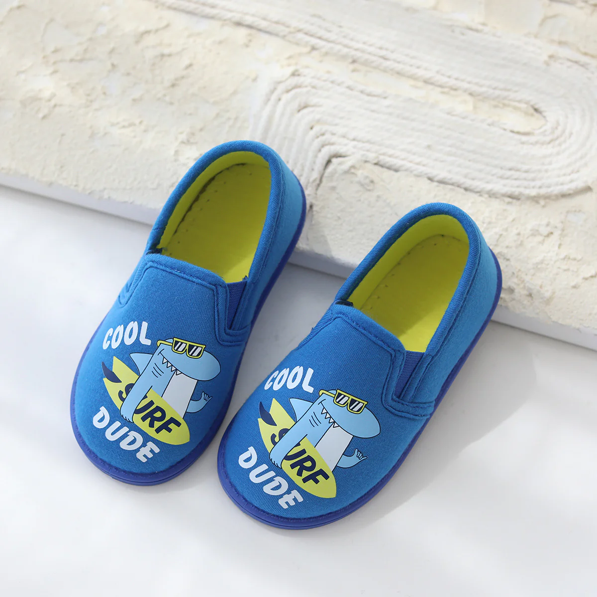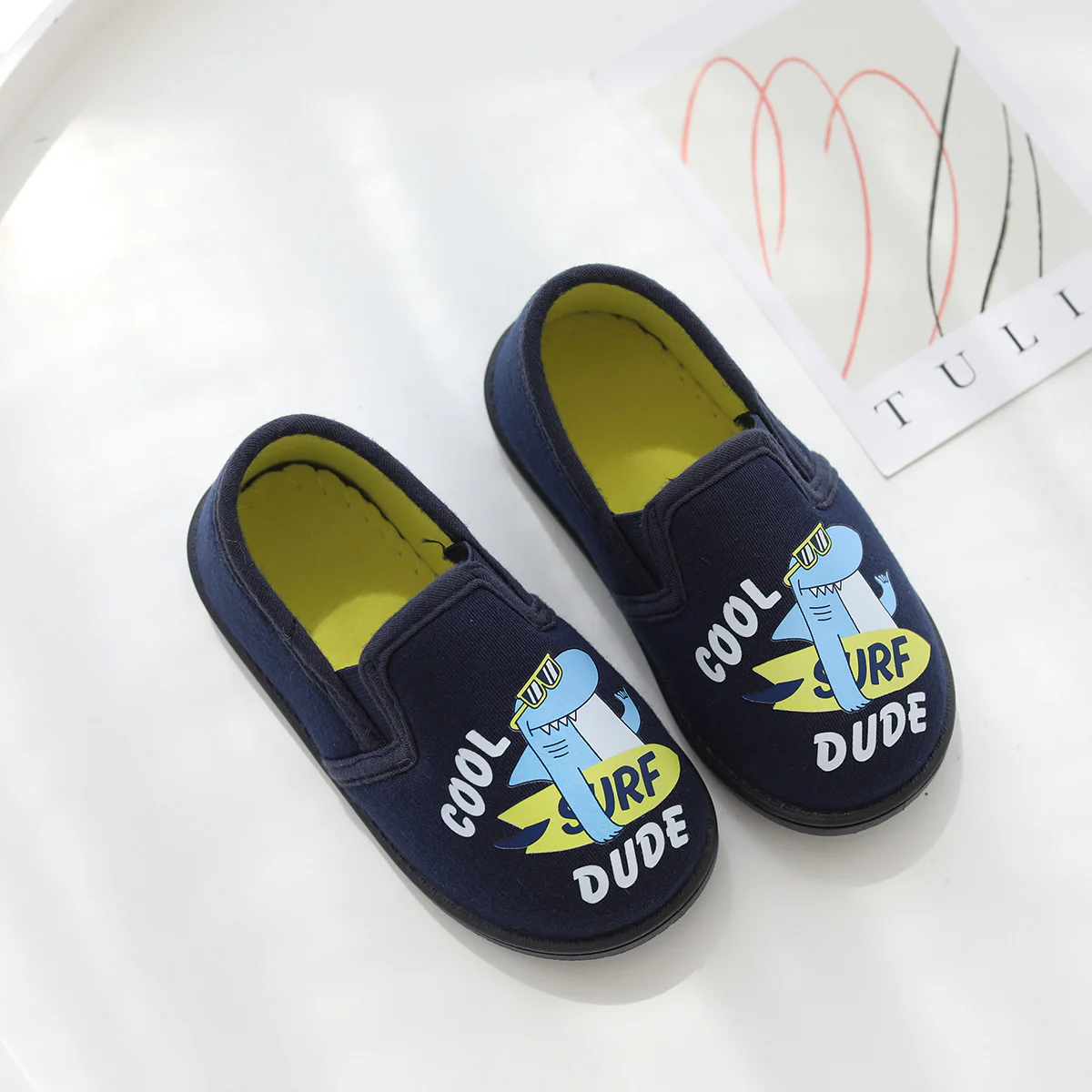 DEANWANGKT Cartoon Boy Rocket Thick Bottom Indoor Non-Slip Home Covered Heel Slippers Children's Cotton Cloth Pumps Foot Changing Floor Slippers