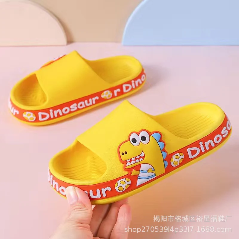 DEANWANGKT Summer Girls' Non-Slip Dinosaur Fun Boys Indoor Cute Cartoon Children's Slippers Bathroom Outdoor Wear Shit Feeling