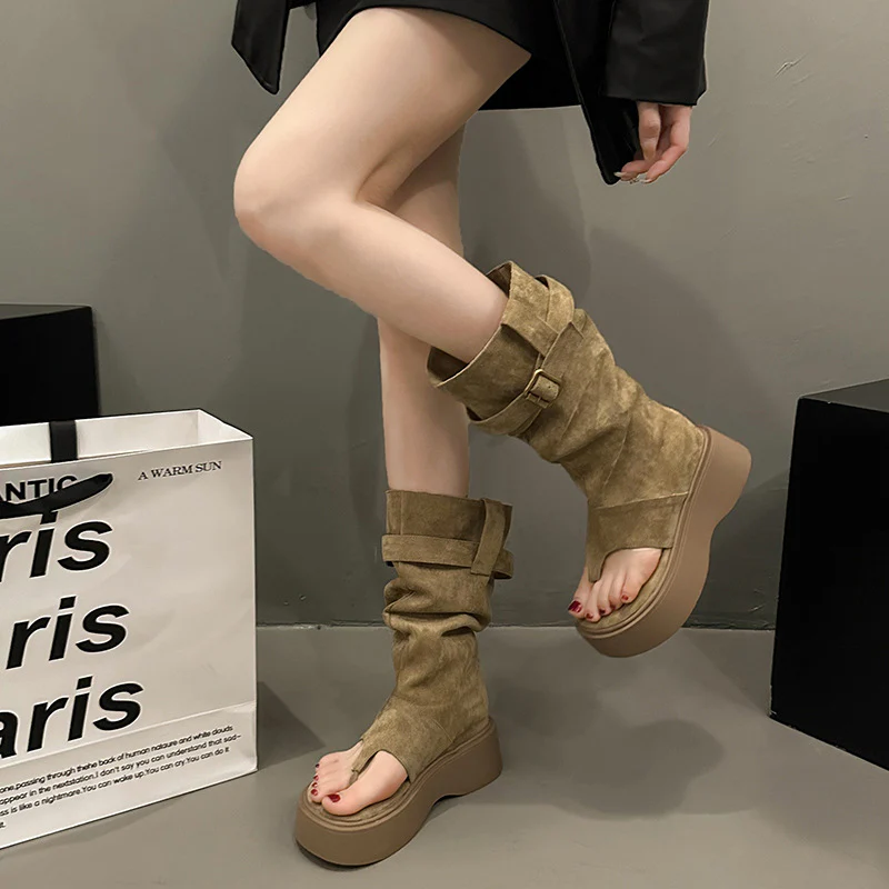 High Pants Boots Knight Boots Fashion Brand Retro below the Knee Long Boots Spring and Summer Thick Bottom Female Boots Western Open Toe Boots
