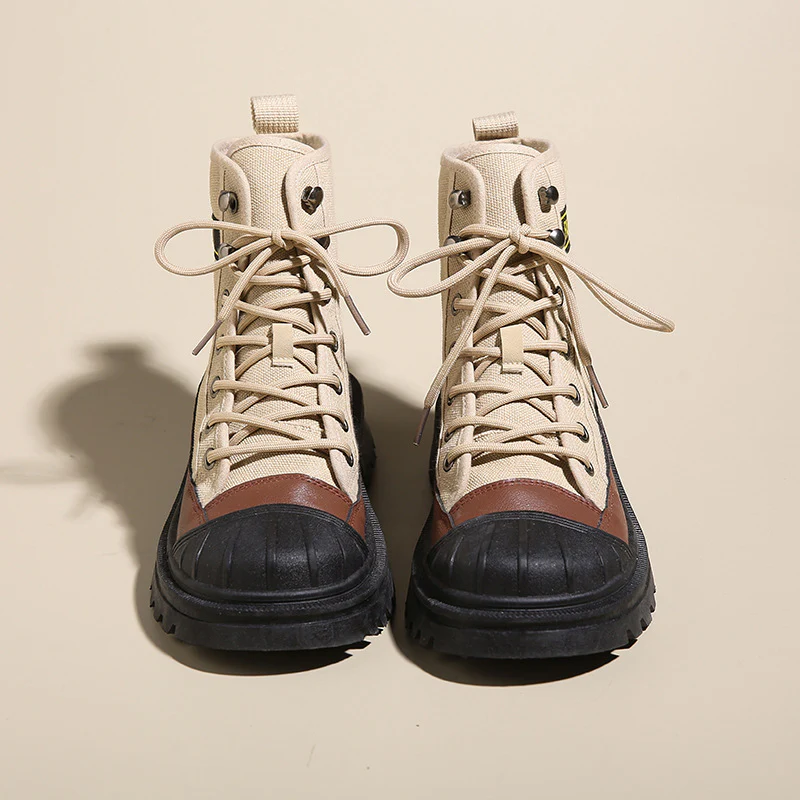 Spring New Martin Boots Korean Style All-Matching Motorcycle Boots Ins Fashionable Platform Canvas Casual School Boots Jcd01