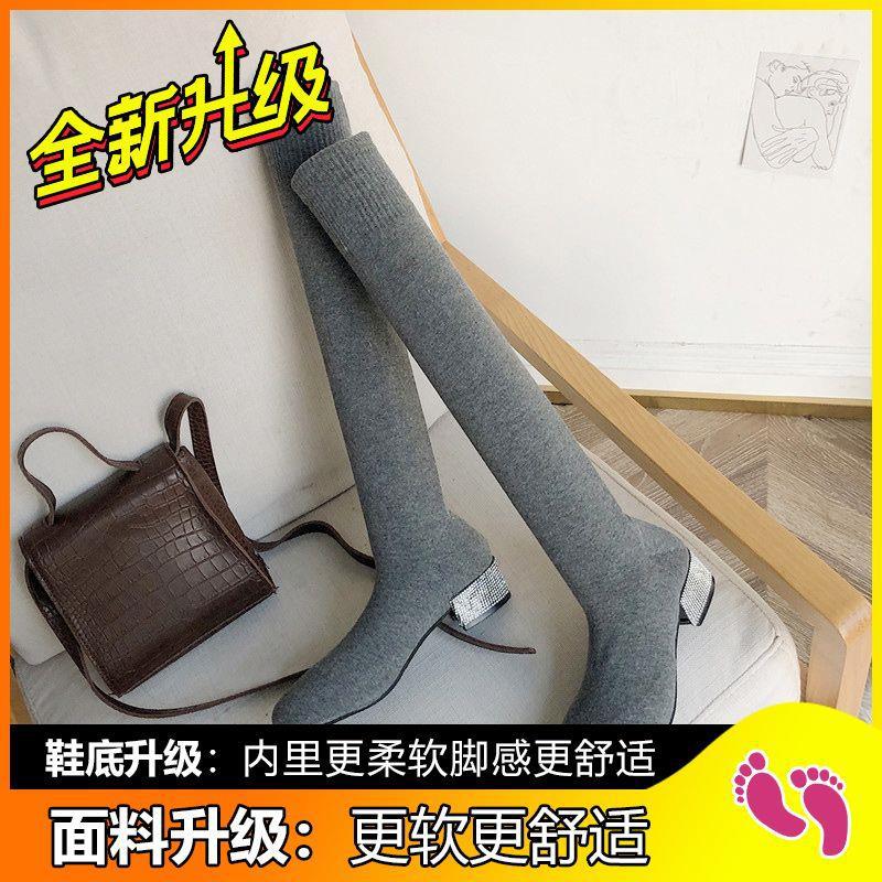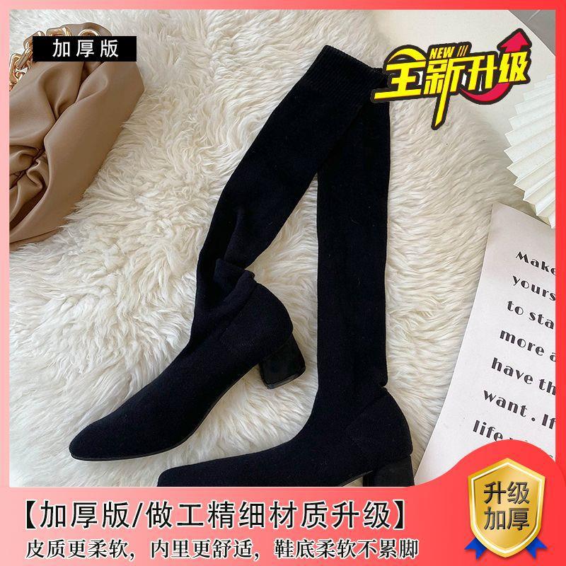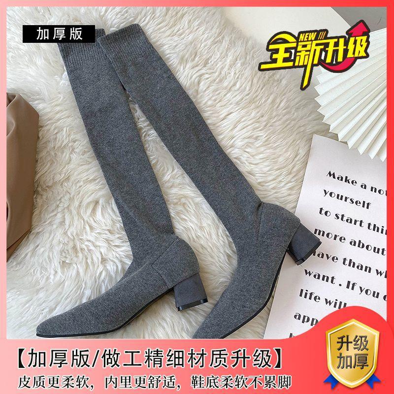 Over-the-Knee Boots Women New Elastic Socks Boots Chunky Heel High Heel Long Stockings Skinny Boots Spring and Summer Thin