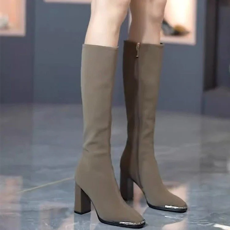 High-Heeled High-Top Fashion Boots Women's Autumn and Winter New Korean Style Temperament Women's Side Zipper Boots in Stock Wholesale