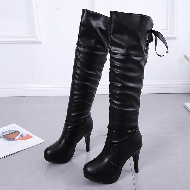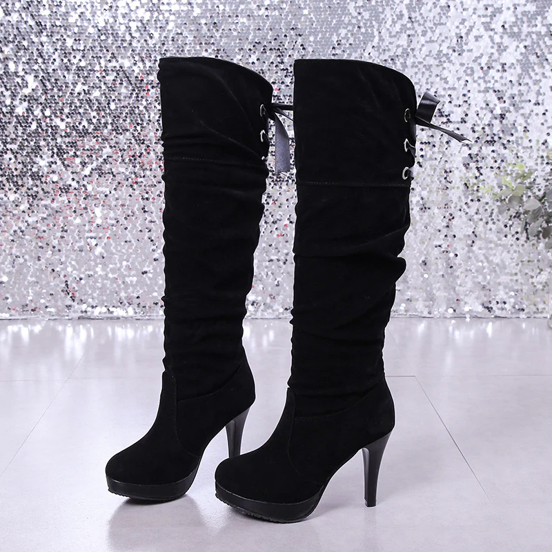 Autumn and Winter New Korean Style High Heel Women's over the Knee Boots Lace up Casual Women's Martin Boots